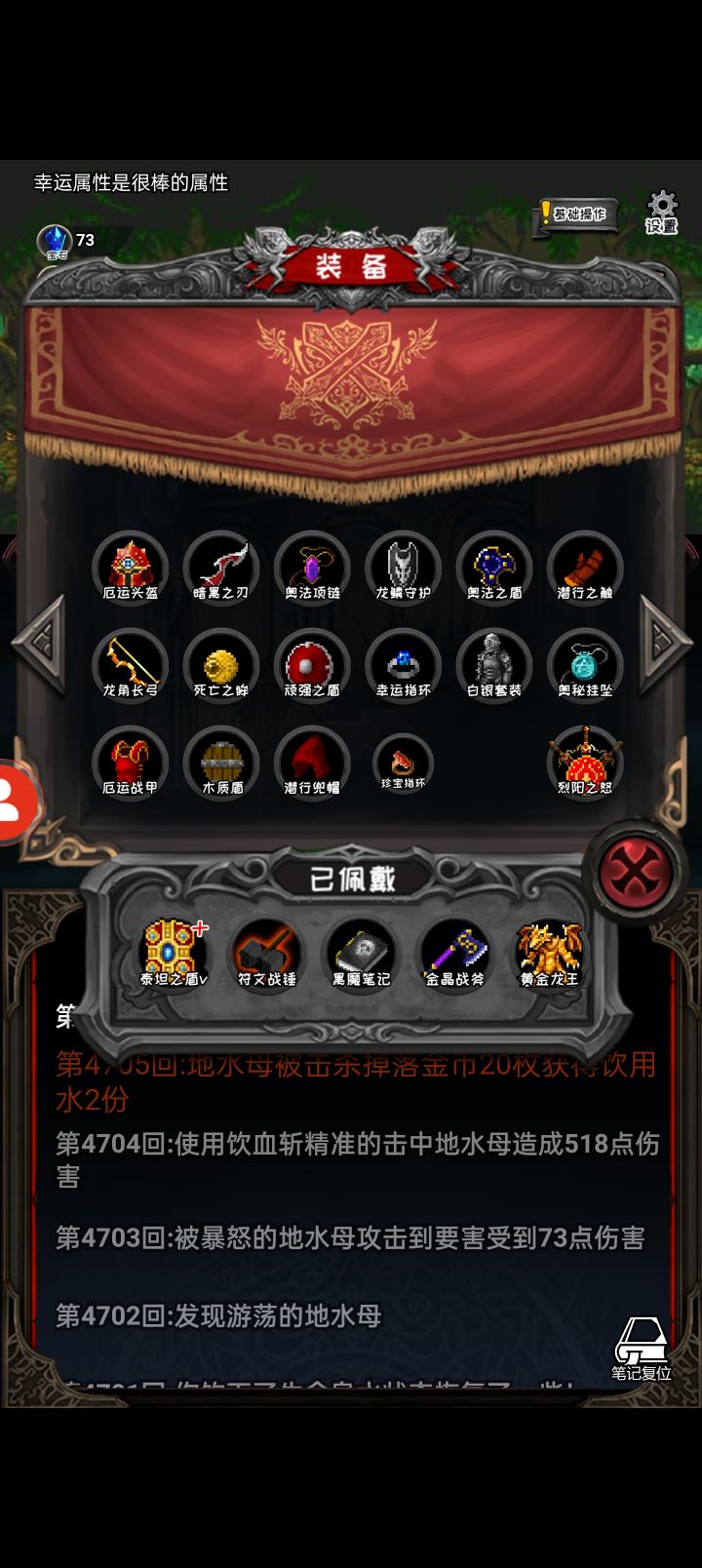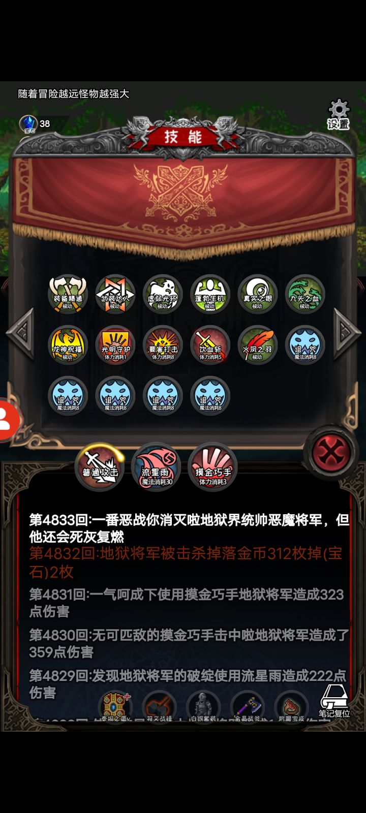 作者我有俩问题1.我进入无限月读了,从60层打到109层,很多事件再也没出现过了,甚至没有打出来一件新装备。2.你看我打出来五个一样的主动技能,这啥bug?还是就设计成这样的。