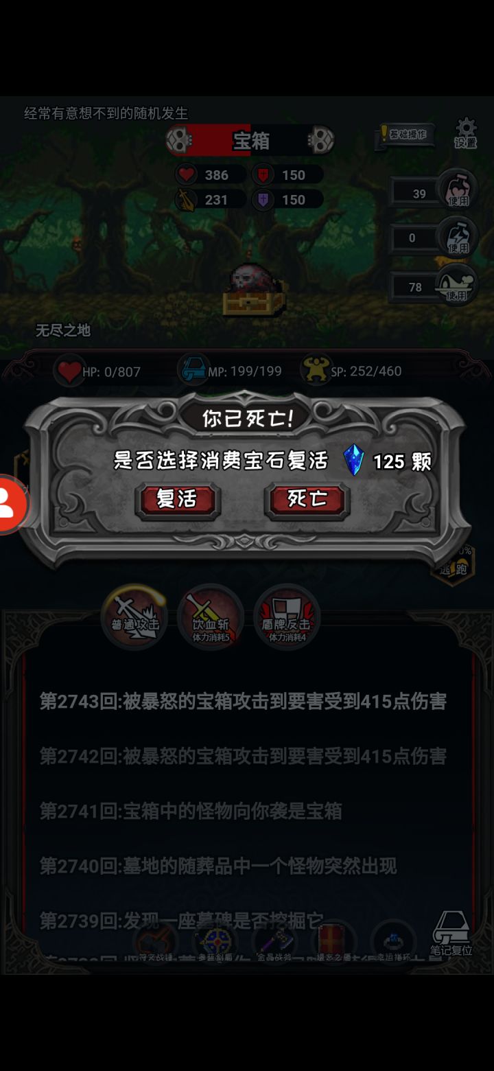 游戏体验非常不好,看装备还可以,复活了四五次血量到了800,幸运到了六,然后被宝箱两下捶死😂