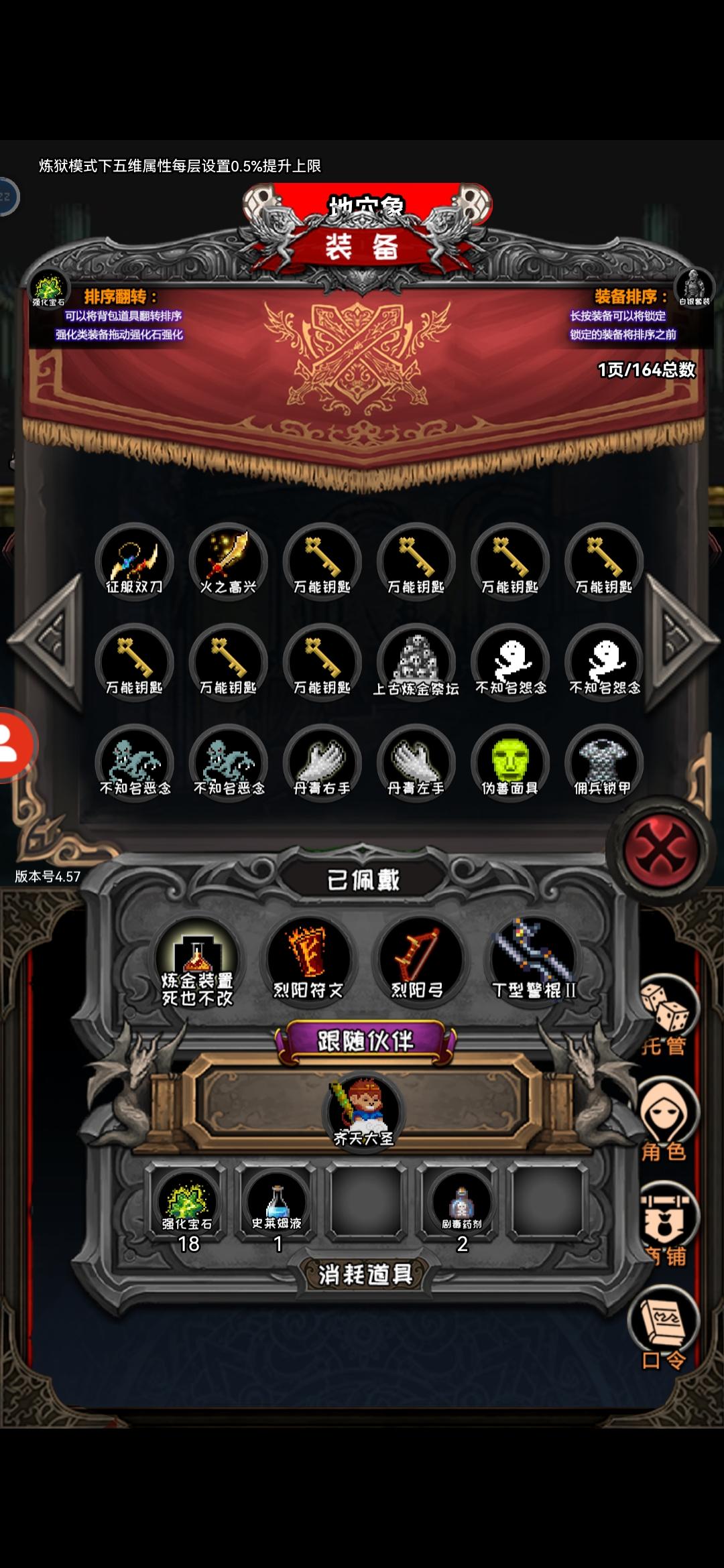 建议出个一键使用消耗品的功能,不然史莱姆液体一不注意就上百瓶,使用还需要一个一个双击点几百下,有时候攒多了又懒的点,就看着他越来越多,就越不想点😂