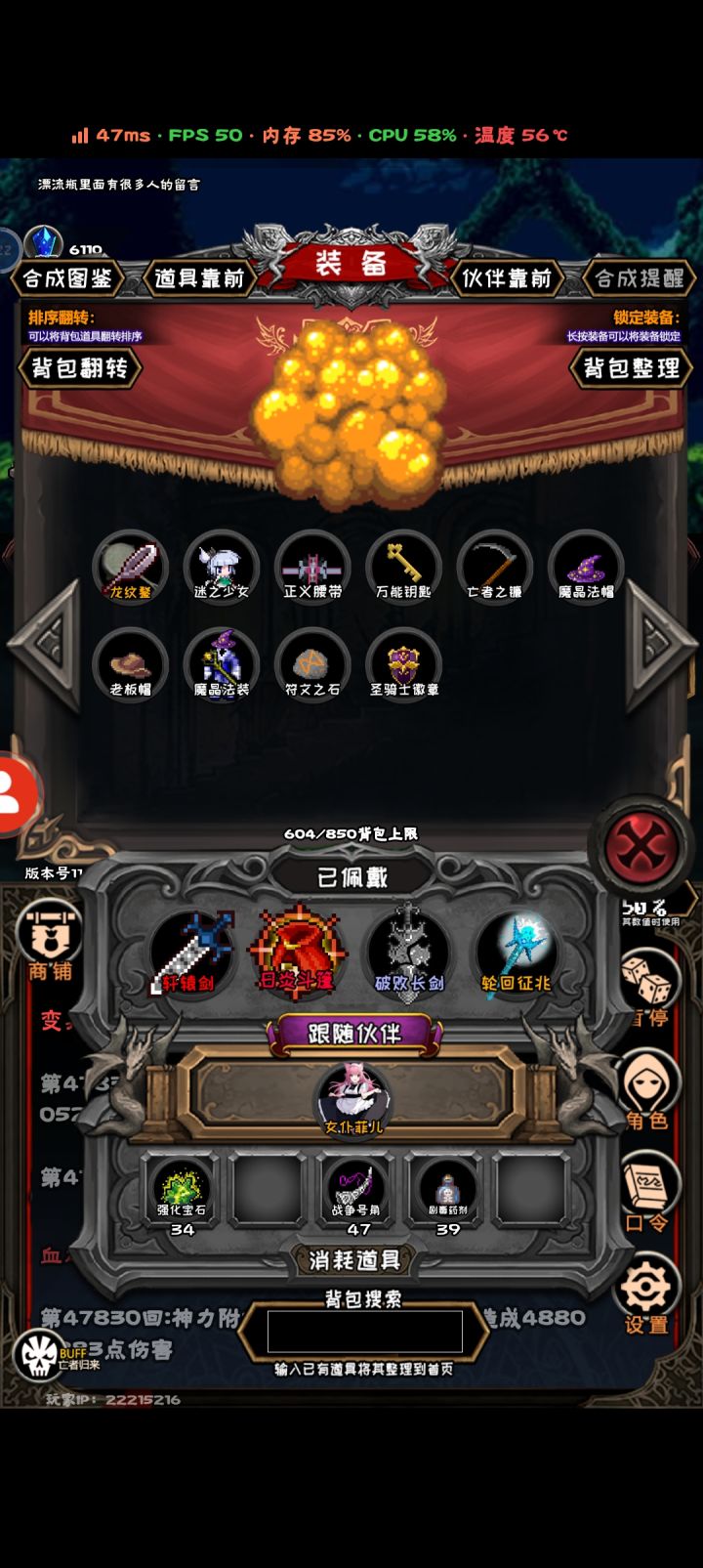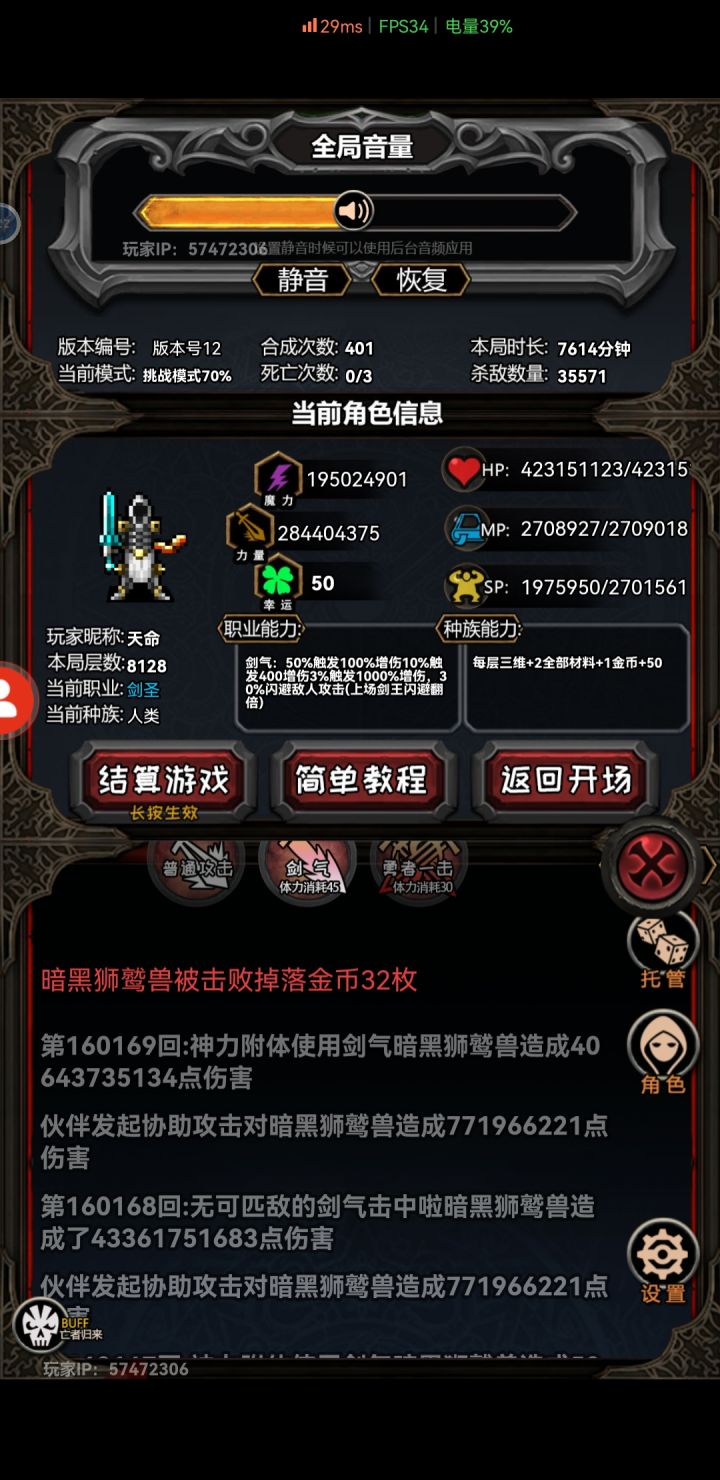 关于剑仙这个职业,我可能还是个新手。但是我玩了四次,前两次只有2000层以内拿到诛仙剑阵图,成了剑仙。但是我转了万灵体,没有先天剑体了。所以我就重新开了最后一次。这次开局非常顺利,一直到3000层。所有东西全部都有,就差诛仙剑图,用宝藏地图七八次,一次都没找到,现在都8000层了,还是能打得动,但是真的难受,一个怪要打四下。强烈建议调整,到后期对剑圣玩家真的不友好。