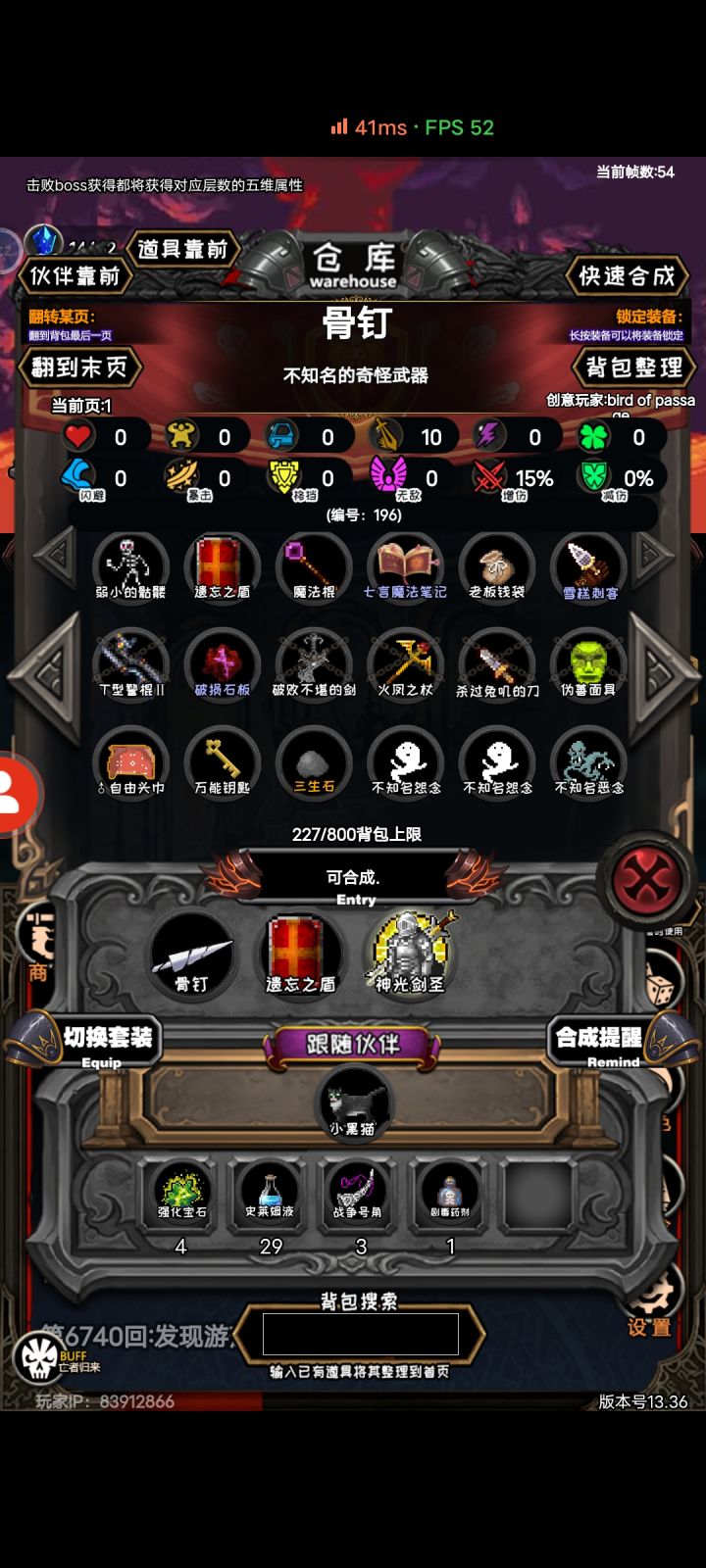 物品太多了,建议出个分类+熔炼功能(不是爆出熔炉才能熔炼)