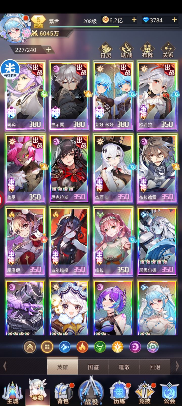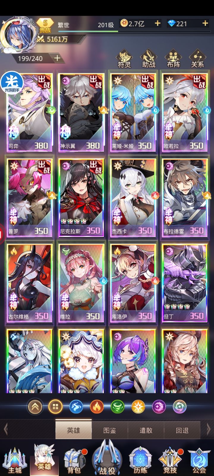 牌姐没练起来,所以只能把一个输出还算看得过去的神示翼先成神了,以后牌姐练起来了再把神给转移给牌姐。还有好多没调整,装备,魂玉,符灵这些都没调整,所以战力看起来低了一些有兴趣可以去B站看我的成神视频BV1PM4y1U78h