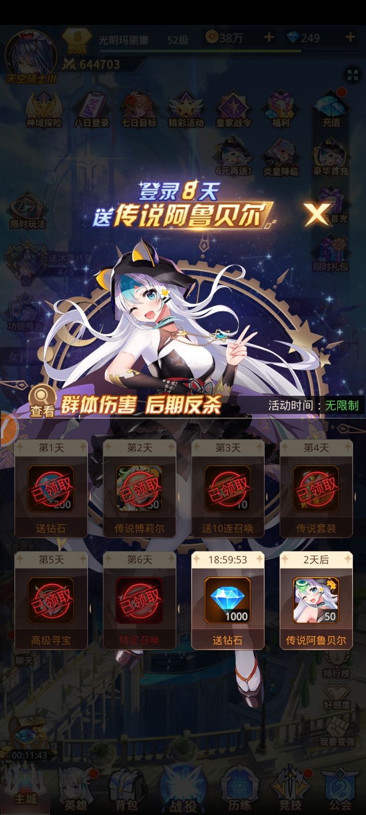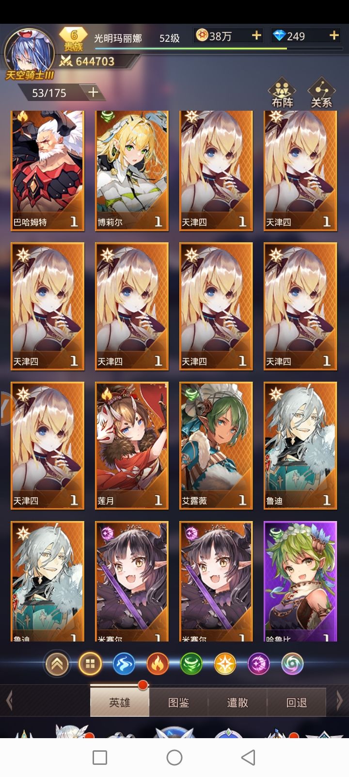 玩了小半天,前期送的二十发抽卡,出了3个金色的角色,不知道算欧还是正常,立绘也挺精美的(ง •̀_•́)ง游戏画面很炫,玩起来一点都不卡,关键妹子英雄很多,我直接xp拉满,男角色都带上的,最重要的是Jessica也太美了吧😍😍😍
