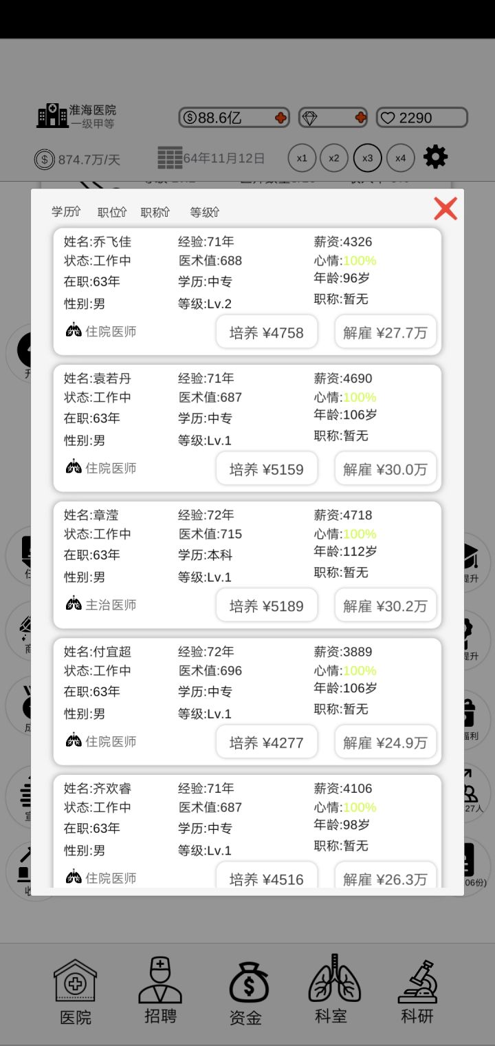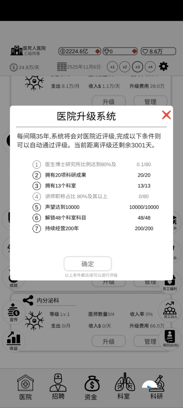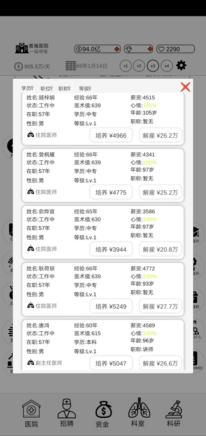 为什么要博士研究生和讲师要占总人数的80%,不能改成博士研究生 讲师 要有多少个人数吗?所有科室医生几百上千人,你这个占80%要怎么搞才能达标?试了二个星期每天5小时玩这个游戏,到现在都没达标卡在三丙。希望尽快改良。