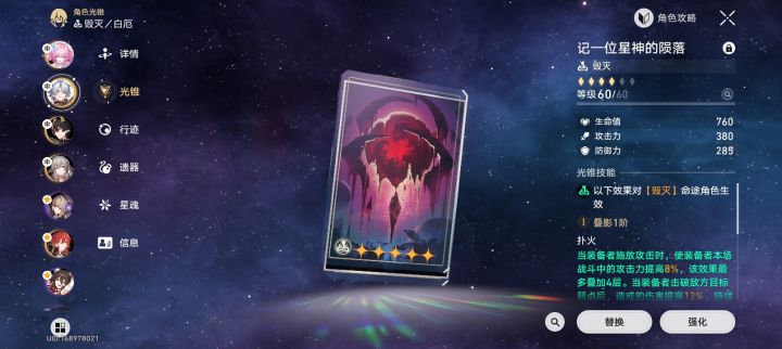分别是我的配队,白厄本身,还有光锥…零命,对于零氪党来说这个打出来的数值已经算不错的(对于我来说)别问我,别问我为什么不出专武,我是抽卡的神,抽砖五的废物…