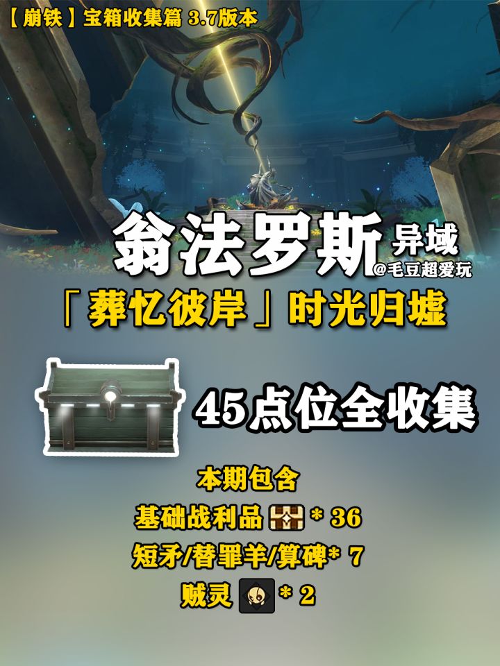 UID:102444222【V3.7攻略】「葬忆彼岸」时光归墟宝箱全收集 全篇共计包含: 🌟基础战利品*36 🌟短矛/替罪羊/算碑*7 🌟贼灵*2 开拓者需优先完成开拓任务《成为昨日的明天》,进行任务时自动解锁地图异域时光归墟。 敲重点:防止各位宝们晕3D,3D房间内没有旋转地图视角。 收集难点:40号替罪羊,需收集其他地图共计32只替罪羊兑换4次移动。#成为昨日的明天 #其他攻