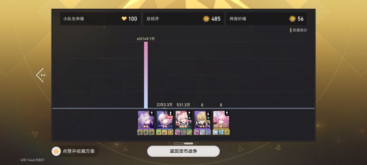 超通用公式,试用也能过A820;①注意后台具有200%出手速度的体系角色,如桑博、姬子、刻律、人形大地兽等,搭配双鞋(每次行动后加速)前排肉装即可达成绝大部分的体系通解;后台角色不吃debuff十分稳定;时间不够就加个瓦尔特;②如果只是升段位就不要选择高难遭遇和高品质海克斯,全选最低哪怕难度20关底也就60多不到70e的血量,但如果选多了哪怕难度5也有可能血量超百亿;除非该海克斯是你的体