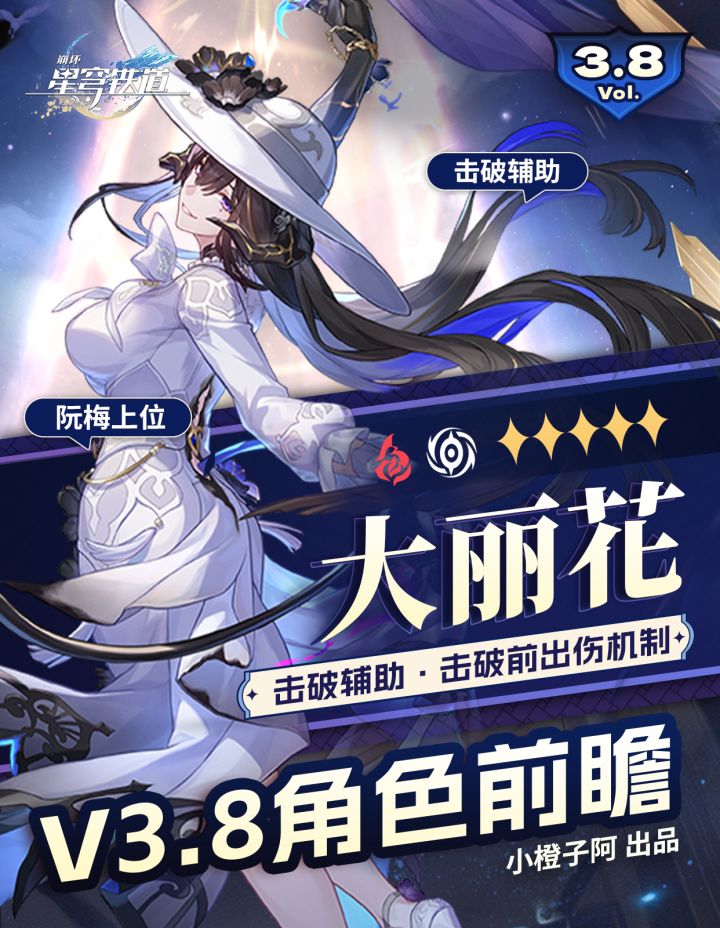 UID:113769211开拓者们好鸭~这里是赋赋!这次带来的是美丽大姐姐【大丽花】前瞻攻略!※本篇攻略基于【3.8版本创作服】的数据制作,发布前已获得《崩坏:星穹铁道》官方的同意;且文中所提供的内容仅供前瞻参考,不代表最终上线效果或数值。如果您想提前了解角色前瞻攻略,欢迎关注我们,后续我们依然会进行相关角色的前瞻攻略制作~同时,关于【大丽花】更详细的攻略,我们将在卡池更新后发布!※文中