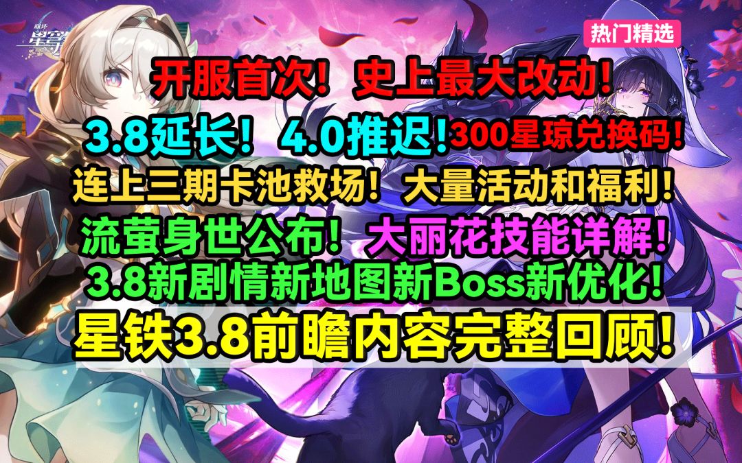 星铁开服首次!史上最大改动!3.8延长4.0推迟!连上三期卡池大量活动和福利救场!流萤身世公布!大丽花技能详解!300星琼兑换码!星穹铁道3.8前瞻内容全回顾!#成为昨日的明天