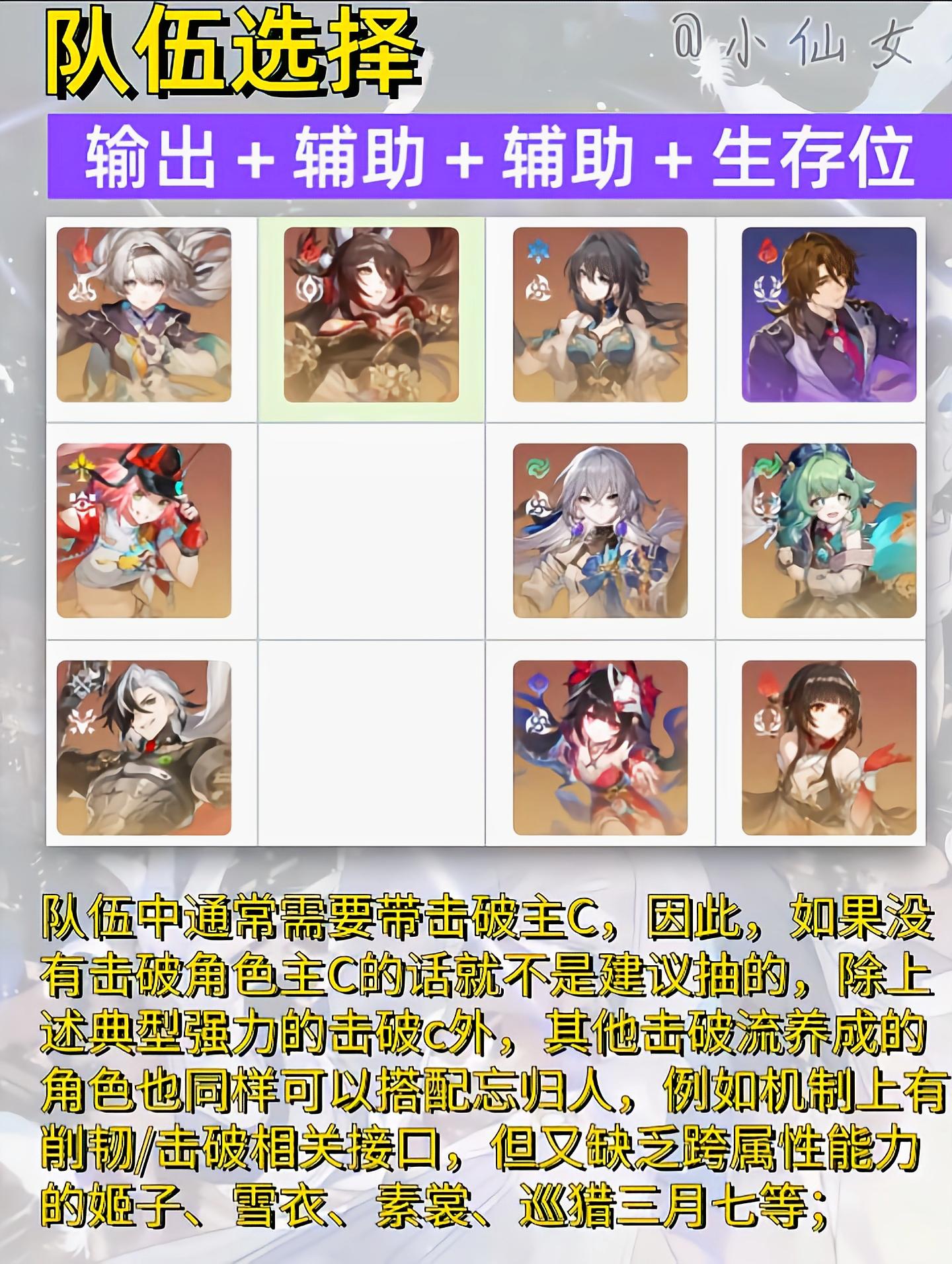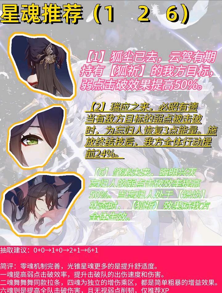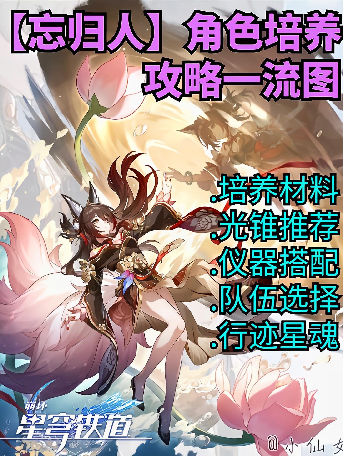 UID:104719728【星穹铁道】 忘归人培养攻略 一流图【角色TAG】超击破伤害、无视弱点削韧、减防【角色定位】忘归人是一名能使我方单体无视敌方属性削韧的辅助型角色。此外,忘归人能使我方全体更频繁地触发击破以及超击破伤害。忘归人是一名强化击破体系跨属性能力的火系虚无,能够赋予击破角色无视属性削韧的能力,加之自身的减防,加击破,超击破,延后行动等增益,整体拔高了击破队的强度。「云火昭」