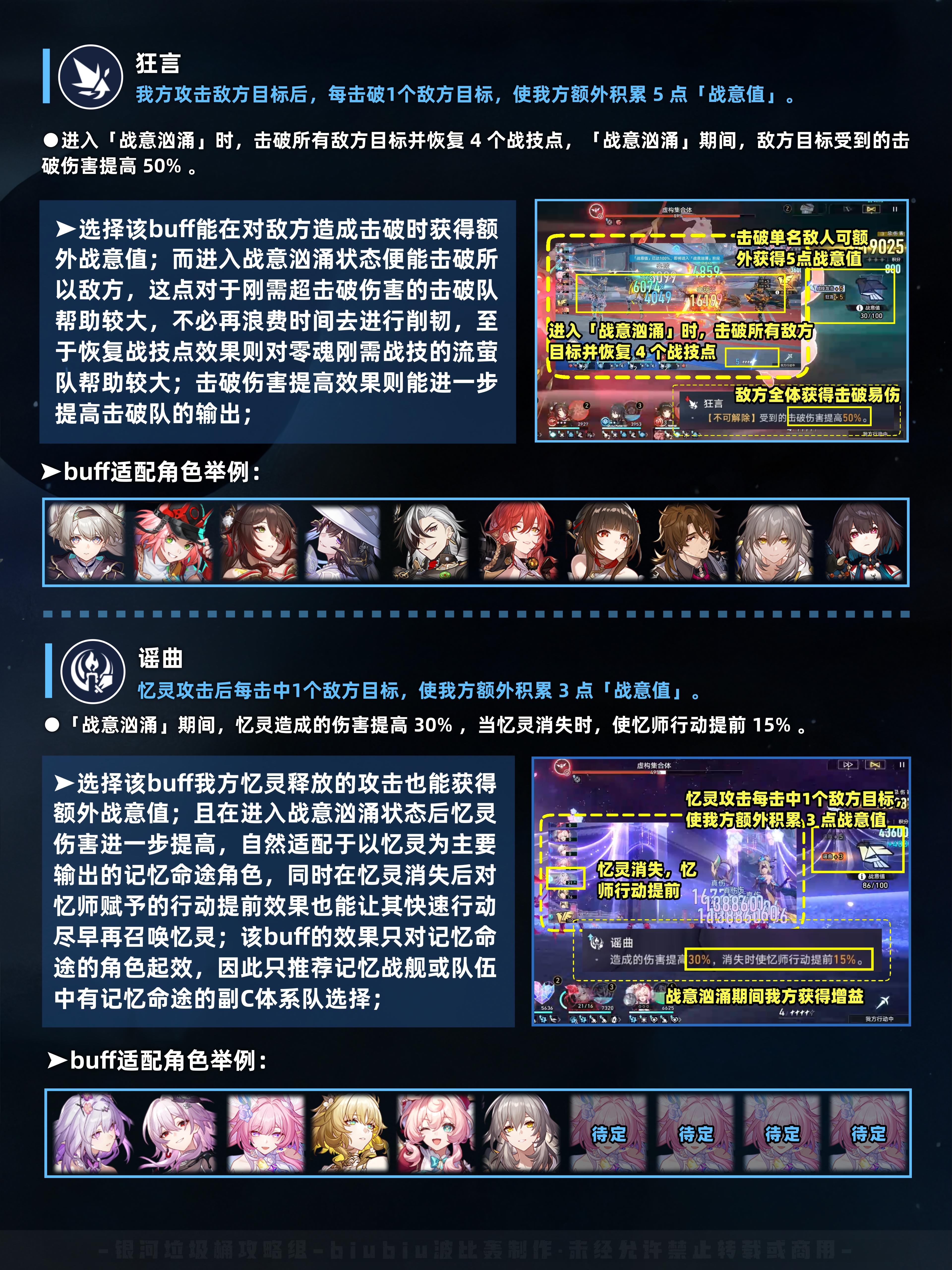 UID:101424396最新一期「虚构叙事·史诗集群」来啦,此次血量对比上期更低,环境增益也比较给力,整体难度不高,这就是新年首期的温柔吗?接下来冻梨会分享一些角色阵容,以及对局注意点,减少大家的试错次数~一、环境增益本期激活「战意汹涌」需要通过战技获取「战意值」,每命中1个敌人给5点。在选择BUFF2击破、BUFF3记忆时,对应体系也有额外的「战意值」获取方式。激活效果:我方全体立即行