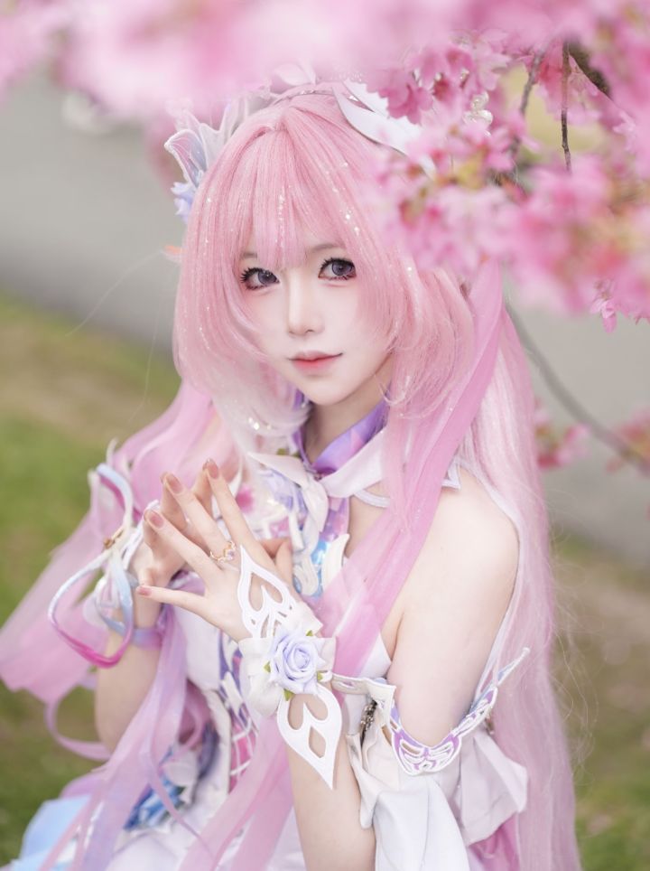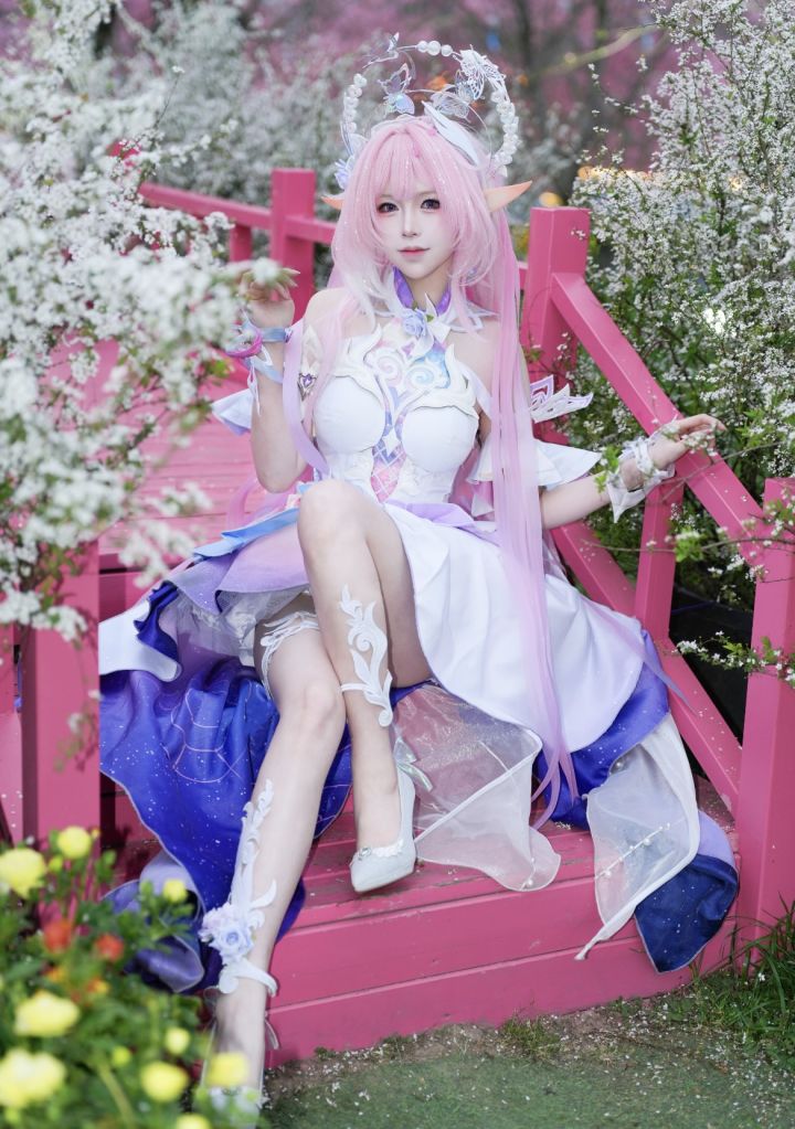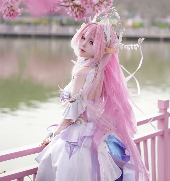 uid:100512025粉白繁花簇拥的朱红廊桥间,昔涟的coser如误入人间的仙族精灵,周身萦绕着清透又梦幻的仙气。柔粉长发如春日樱花般垂落,发间的珍珠环饰与蝴蝶发簪轻颤,耳尖的精灵耳微微竖起,透着不谙世事的纯粹。眉眼间是温柔到极致的澄澈,紫眸如浸在晨雾里的紫水晶,眼尾缀着细碎珠光,笑时眼波流转,似有星光落进眼底,将角色的悲悯与温柔尽数展现。服饰是仙族美学的极致体现,白紫渐变的裙装如月光织就,