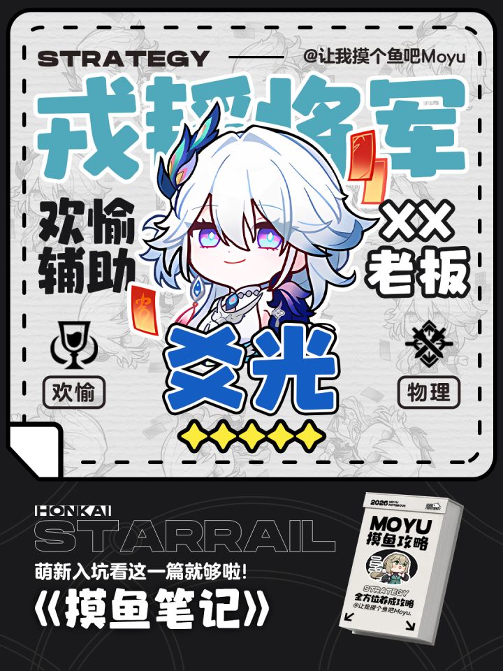 UID:104347362将将!我是摸鱼🐟 (。•̀ᴗ-)✧二相乐园已上线,4.x新篇章开启啦!《摸鱼笔记》当然不会缺席不过这次推荐大家先了解清楚欢愉体系再看攻略哦~本期的主角就是她 —— 帝弓七天将,戎韬将军『爻光』!接下来是本期的《摸鱼小课堂》时间!爻光坠坠重要的机制,一!定!要!看!懂!—————— ฅ՞• •՞ฅ ———————欢迎喜欢《摸鱼笔记》系列的同学萌前去主页报到