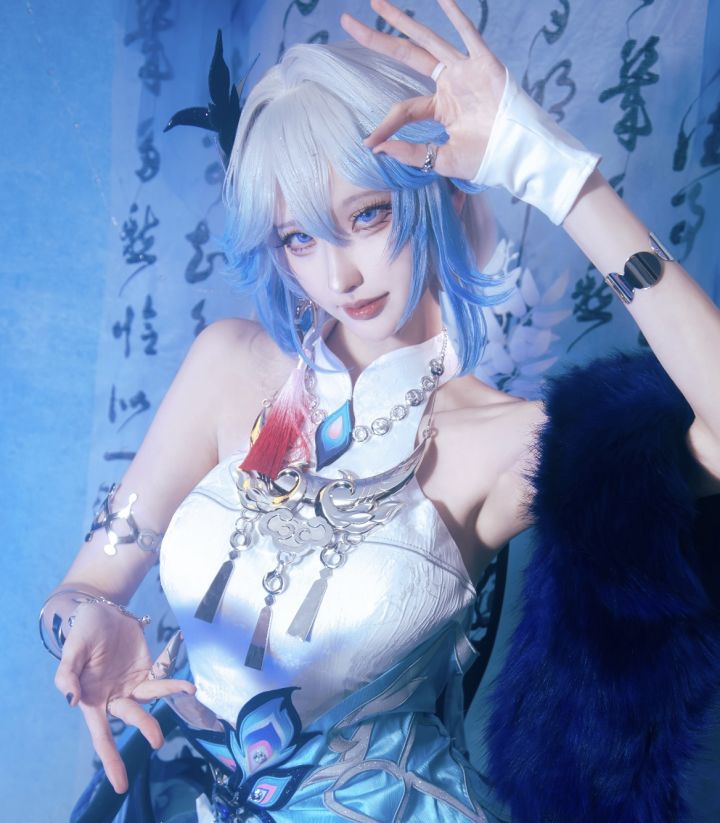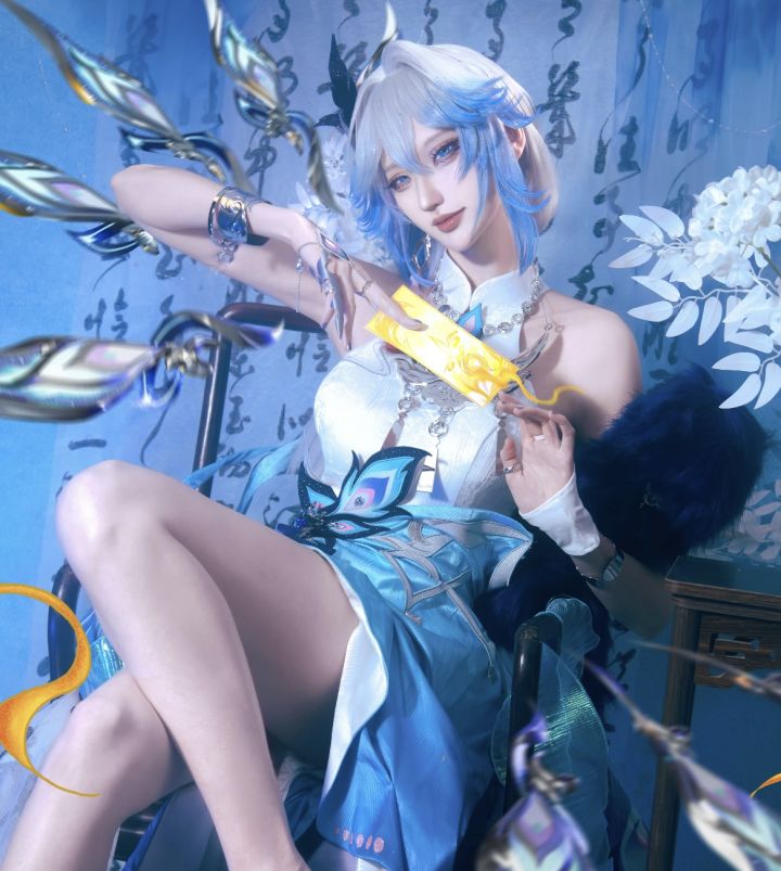 uid:100512025蓝白渐变的短发如碎冰融光,将爻光的贵气与灵动完美呈现。眉眼间的锐利与慵懒交织,淡蓝眼眸流转着运筹帷幄的从容,唇角微扬的弧度里藏着“亿万富翁”的底气与狡黠。服饰细节极尽考究,高领白衫勾勒出利落肩线,孔雀羽纹刺绣与银饰项链相映成趣,蓝调渐变裙摆流光溢彩,毛绒披肩更添几分雍容。背景的水墨纱帘与白梅枝桠,衬得她宛如从古画中走出的贵女,手中金箔信笺与飞舞的蝶翼特效,精准还原了她“