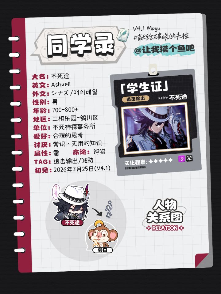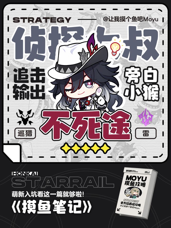 UID:104347362将将!我是摸鱼🐟 (。•̀ᴗ-)✧帅气的不死侦探来啦,追追又击击!本期的主角就是侦探大叔 —— 雷系巡猎『不死途』接下来是本期的《摸鱼小课堂》时间!不死途坠坠重要的机制,一!定!要!看!懂!#崩坏星穹铁道 #崩坏星穹铁道创作者激励计划 #崩坏星穹铁道攻略 #献给破晓的失控 #不死途 #星穹铁道不死途 #让我摸个鱼吧moyu