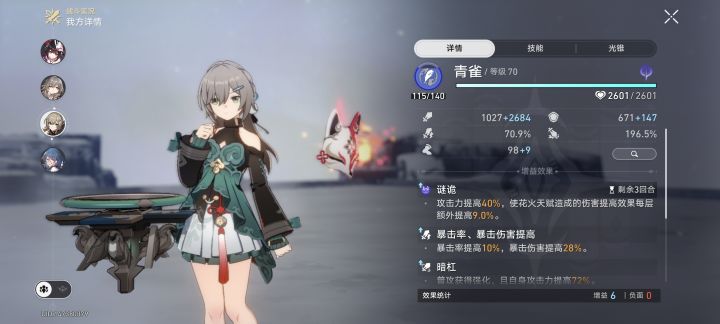 花火是一个很特殊的限定同谐,尤其体验在其配速和配队方面。花火的战技最高能提供一百多的暴伤。这个数值给的非常高,而且是战技启动覆盖率高。一个非常强力的战技往往意味着其他技能的数值非常拉胯,例如花火天赋。决定一个同谐角色泛用性的增伤属性,挂在花火的天赋里,叠三层只有18%增伤,且还需要队伍消耗战技点才能叠层。由于这几乎可以忽略的增伤天赋,花火的泛用性掉了一个档次。高暴伤低增伤,让花火注定只能当一个直