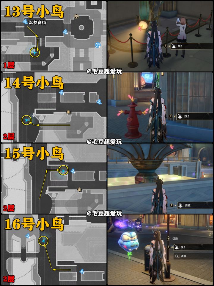 【崩坏:星穹铁道】UID:102444222这里是毛豆,本期毛豆整理了2.0版本新增地图匹诺康尼-黄金的时刻<折纸小鸟>点位,本篇共计包含20个点位的全收集,希望能对各位开拓者有帮助。敲黑板,这里是进攻略前的小提示:开拓者需要优先完成系列开拓任务《喧哗与骚动》,进行该任务时自动开启地图黄金的时刻,1号折纸小鸟进行主线任务《喧哗与骚动》时必定获取,如果目标点位没有可交互的折纸小鸟则代表已经获取