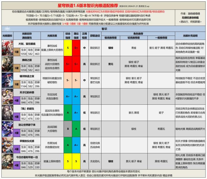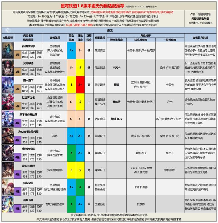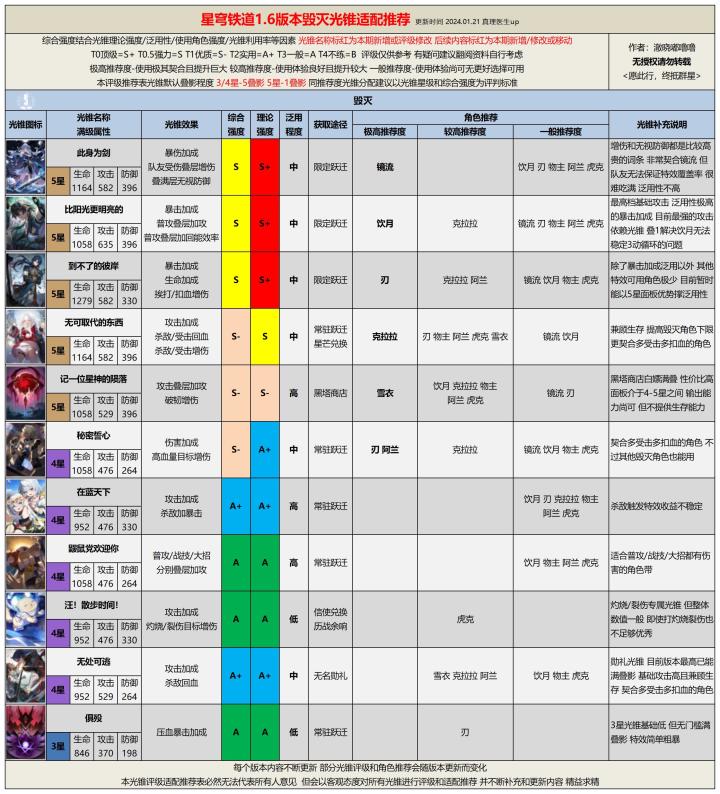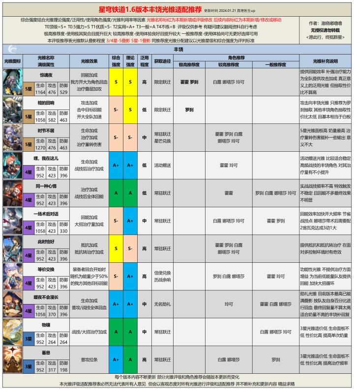 【V1.6攻略】1.6版本全光锥评级适配推荐