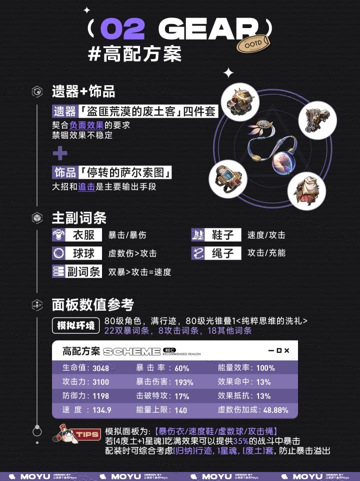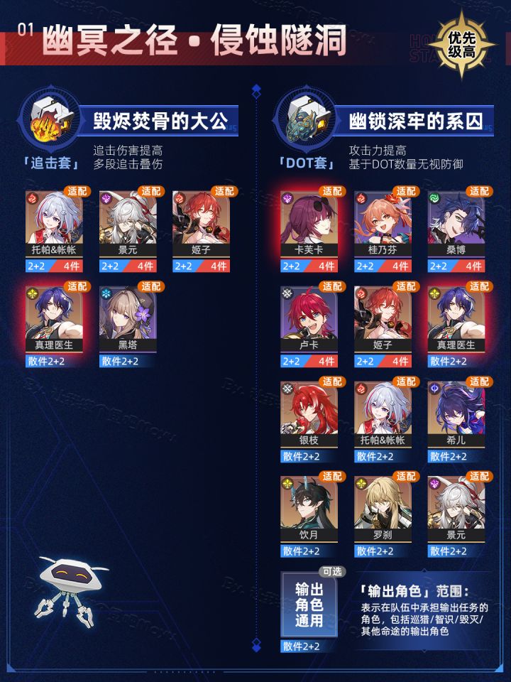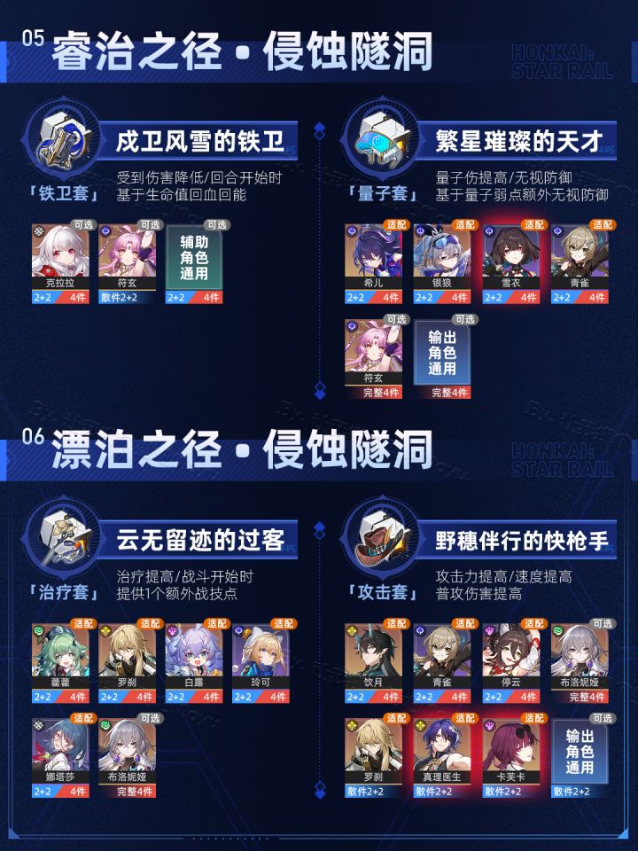 UID:104347362将将!摸鱼来啦~ (。•̀ᴗ-)✧ 又到了双倍快乐时间~崩坏星穹铁道1.6版本『异器盈界』:隧洞遗器限时双倍掉落的刷取适配度推荐;记住时间哦,是【1月26日 星期五】到【2月2日 星期五】结束,持续1周!【这里是备注栏,为大家解释清楚推荐的标准!】Q1:为什么会出现在[完整4件套]中推荐,而[任意2+2]中未推荐?A1:原因如下:1. 角色选择时主要看