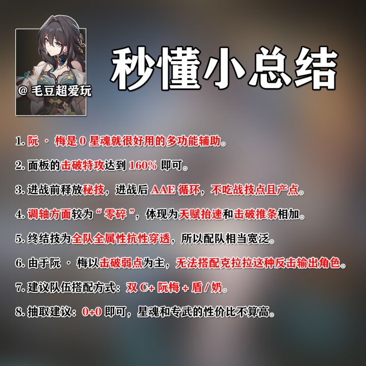 【星穹铁道】抽前必看!1.6阮梅真实强度/平民玩家该抽吗?优缺点全面分析/抽取建议/遗器光锥配队养成/角色定位/配装/武器需求/未来前景/要知道的三件事