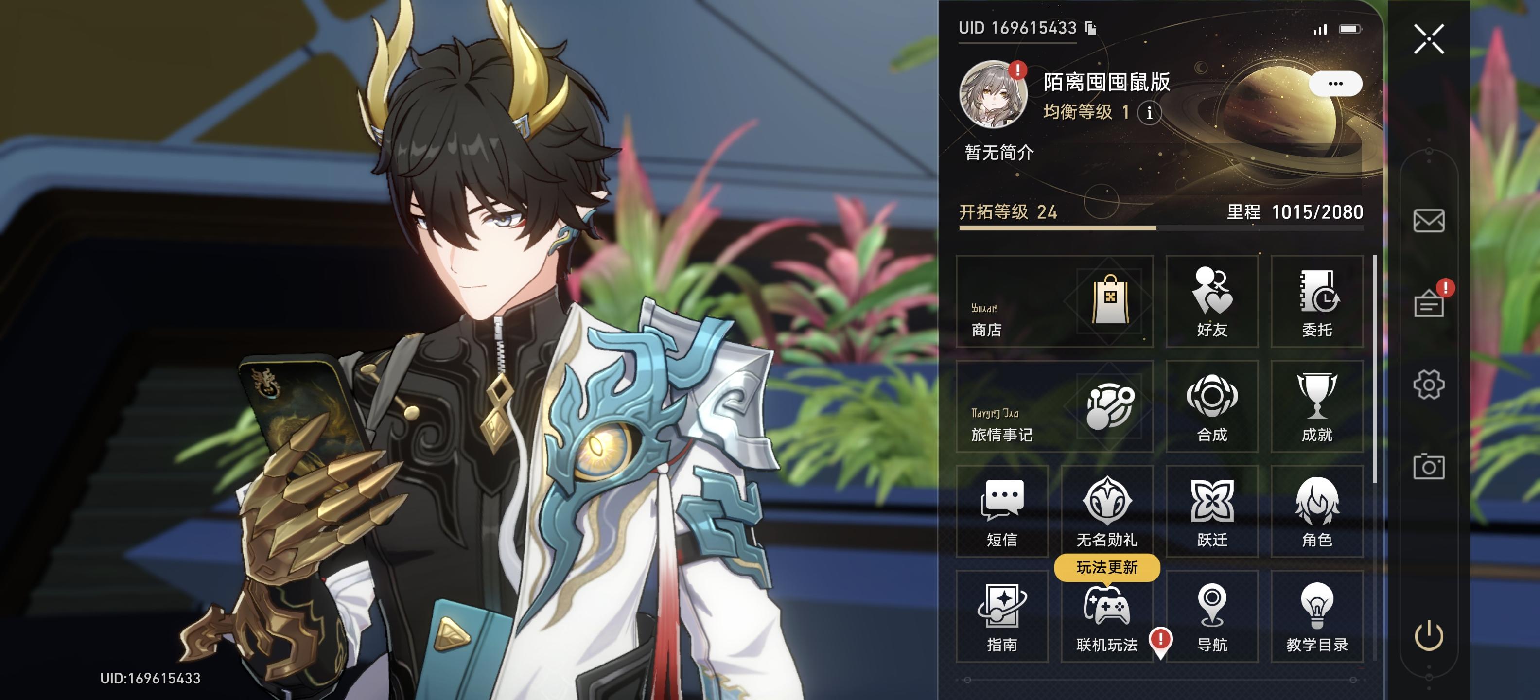 主线雅利洛完结,卡池垫了60抽无事发生6元小礼包+30元小月卡空间站黑塔宝箱已清空金灵自选阮梅,新手池克拉拉等级24级,角色15位