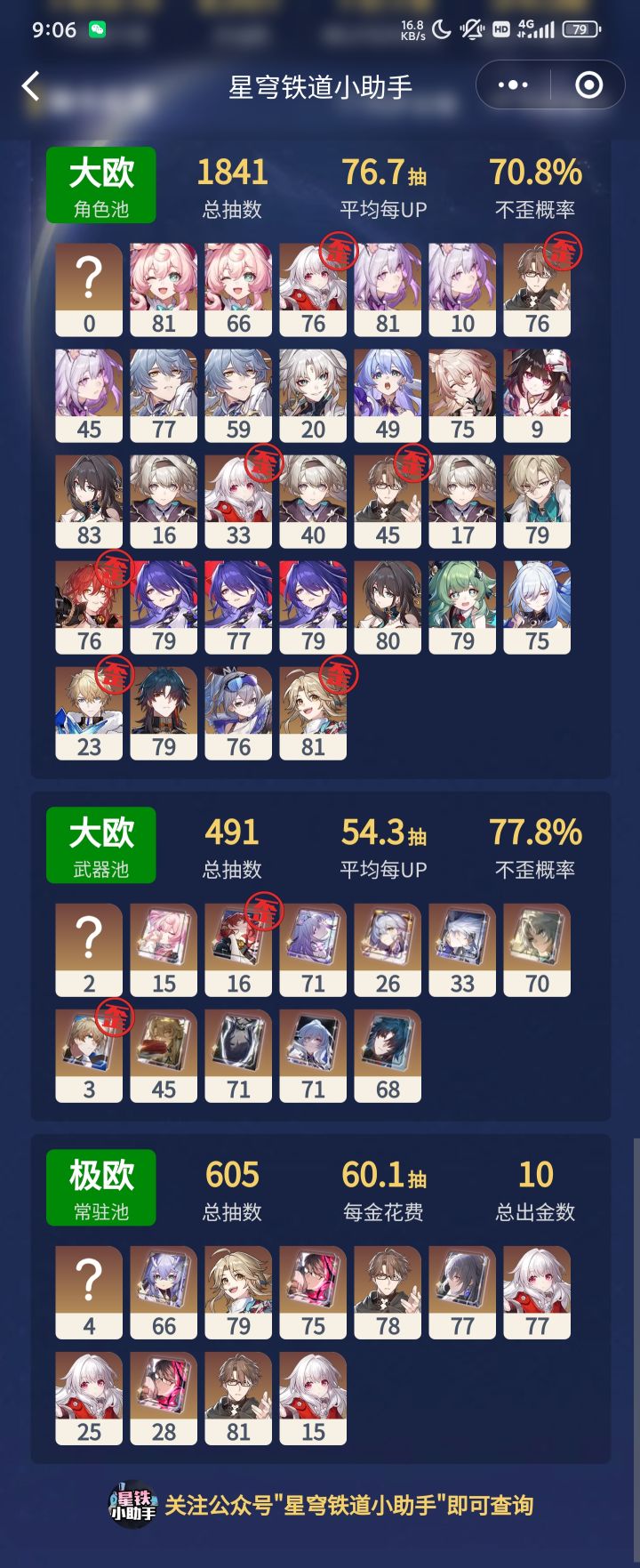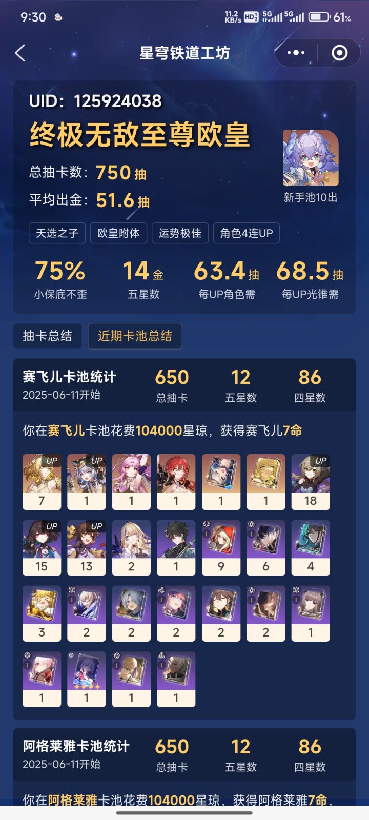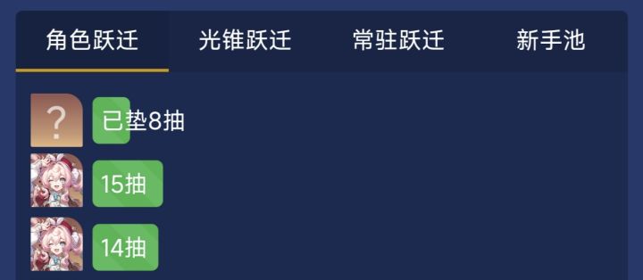 很非,常年大保底,常驻也是保底七八十出,图里没显示一命杨叔,彦卿,杰帕德,光锥连歪两次。目前只有一次大保底预算,缇宝上半勉勉强强凑一个小保底,一命强求不了,我的角色池抽哪个同协好呀?谢谢大家解答!祝大家十连三金不歪!