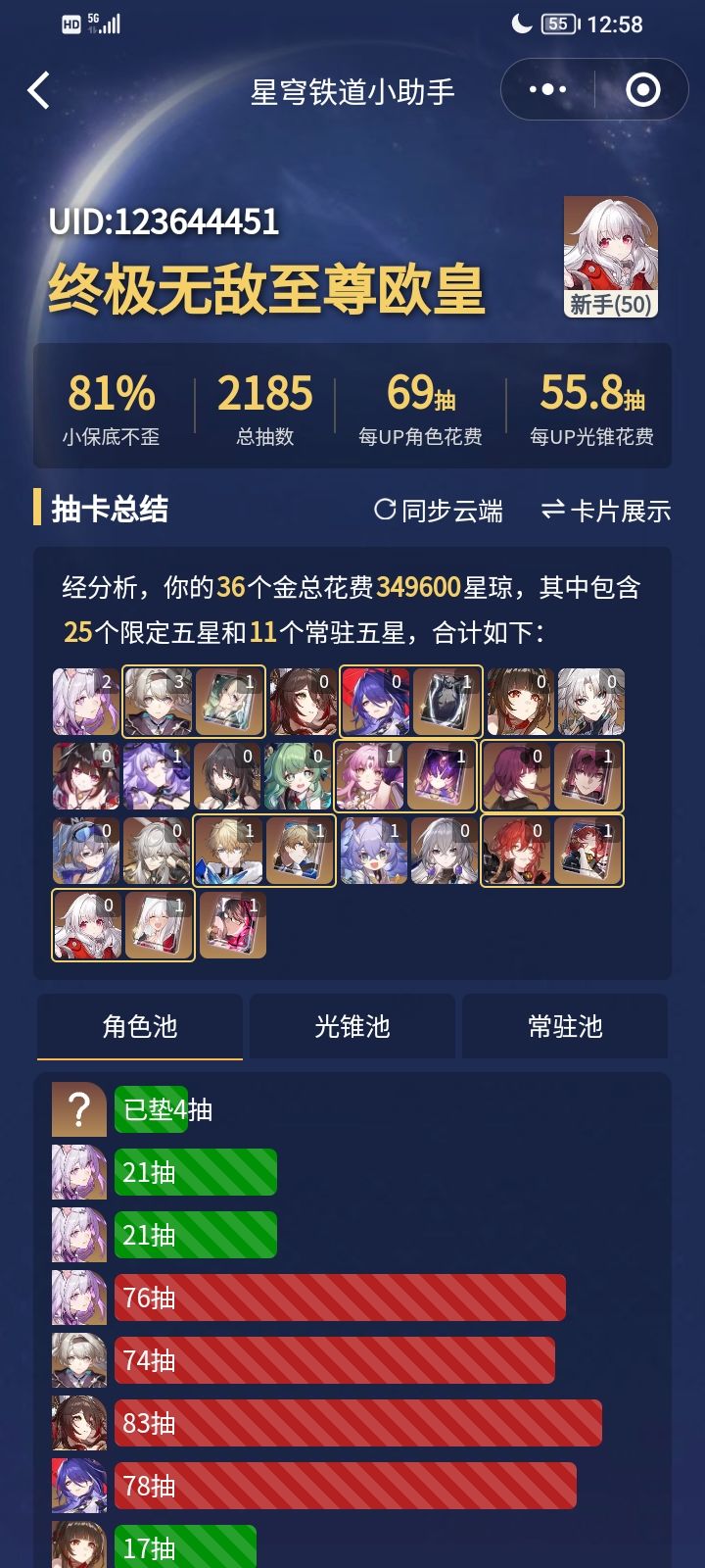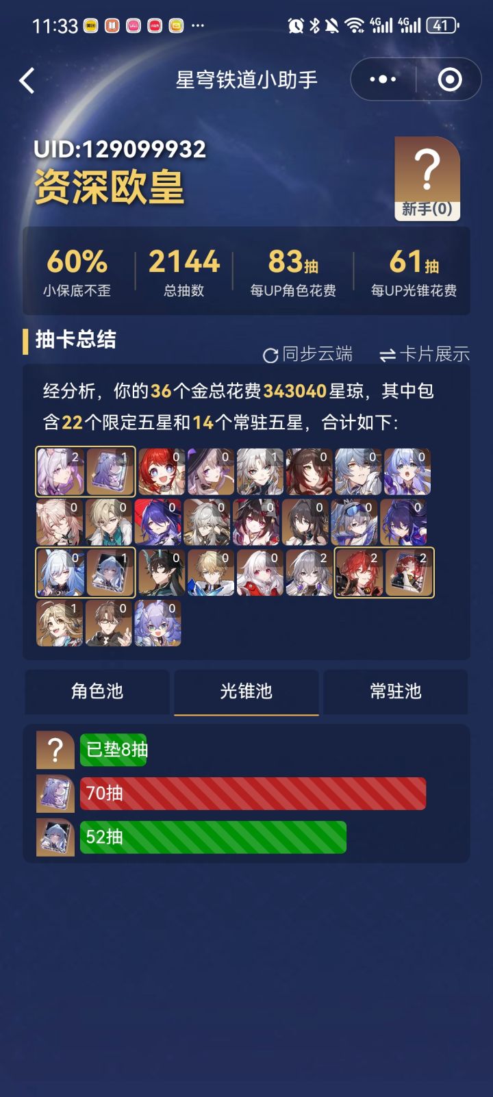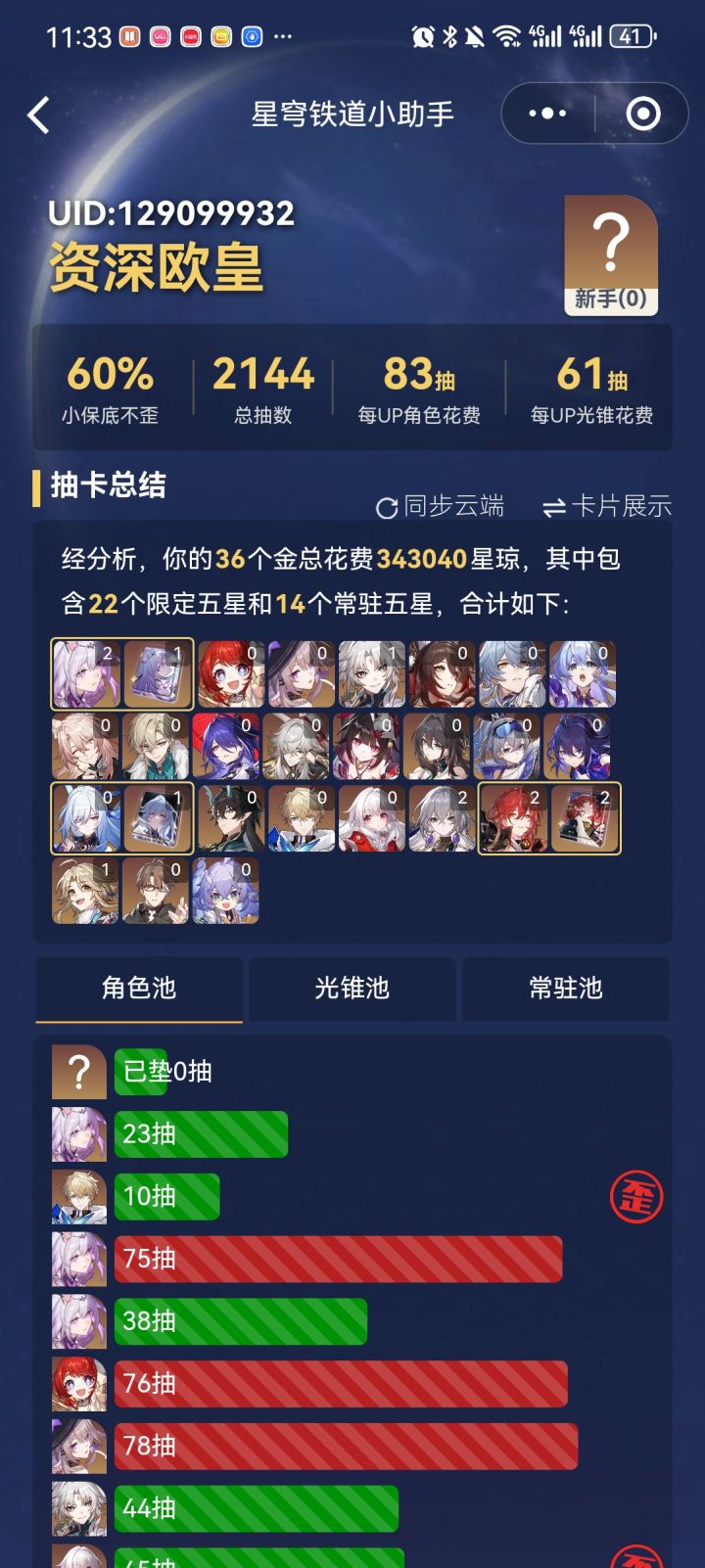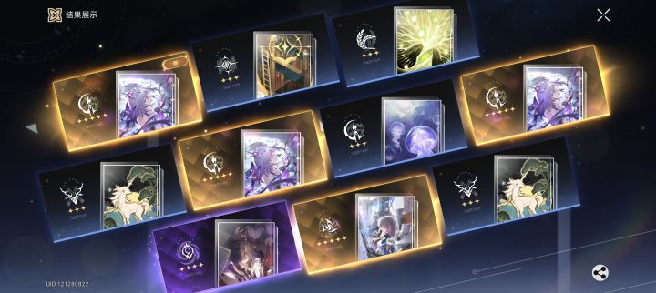 垫到70抽等霞蝶卡池,留了60抽本来预计能出一个没想到出了三个UP!