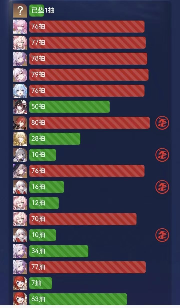 头一次出货是不爽的,为了抽停云下的池子,抽了几轮出了希儿以为可以放心抽了,结果又出了阿雅,你在我抽霞蝶的时候有些狗运该有多好啊