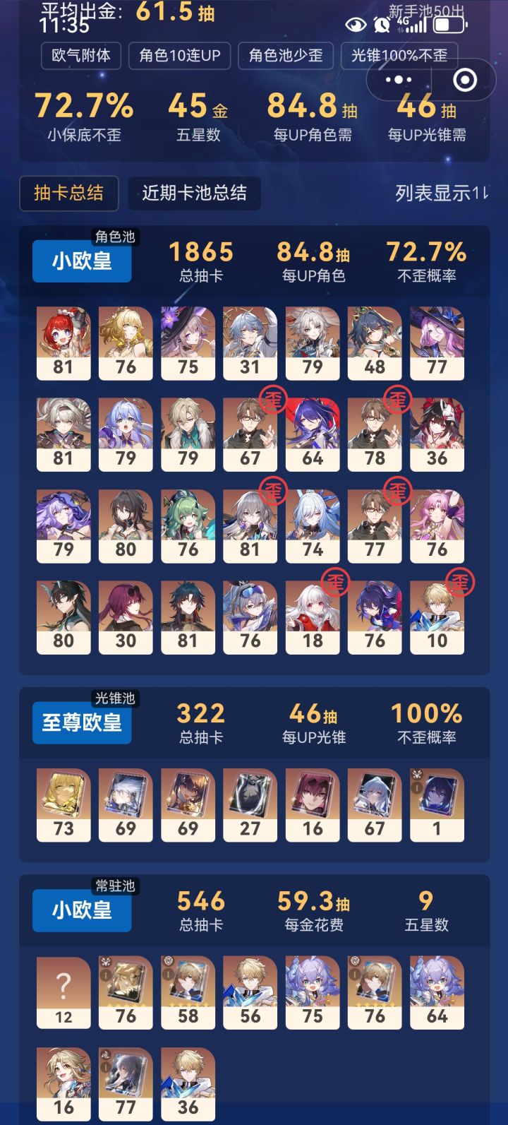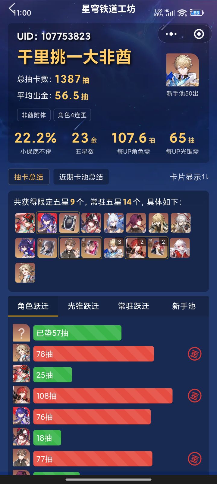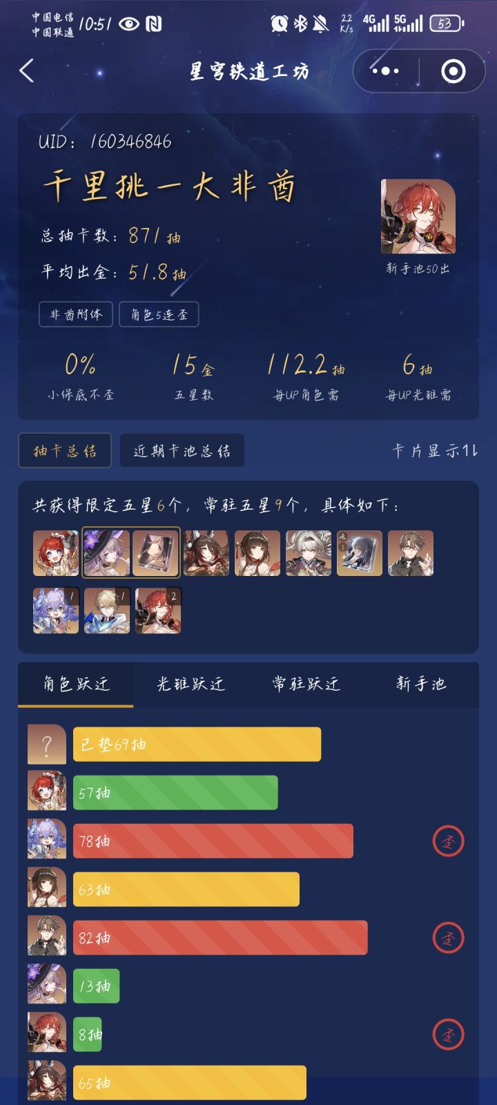 给哥们当日本人整呢 开服老登一次没欧过 为数不多的没歪还全是接近保底 真的不愿意看看你这什么勾实爆率 #崩坏星穹铁道