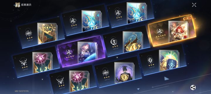 回归之后垫了四发之后打完差分宇宙星琼数刚好520结果下一秒就给我出了 可能才25抽左右 我想要提宝来着 这次过后不知道会不会歪 我从静流复刻以后就再也没有歪过了惴惴不安不知道提宝会不会歪啊😭