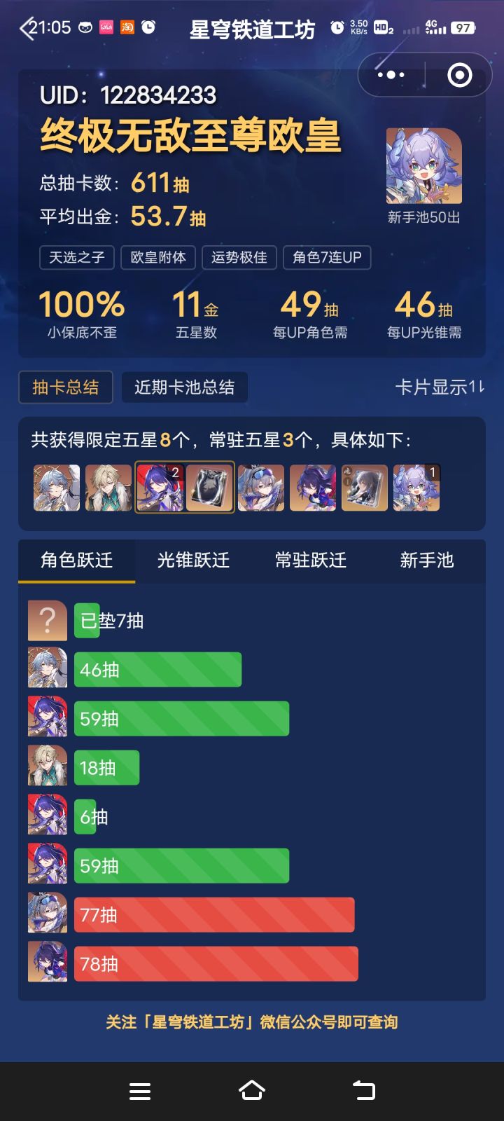 来不及怀念保底了,现在,站在你面前的是极品单抽王#崩坏星穹铁道 #欧皇附体