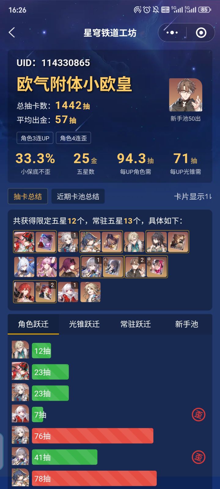 我直接就是捞一手黄泉满命,日天哥不抽了等复刻,狐狸也不抽了,还剩270抽等3.0