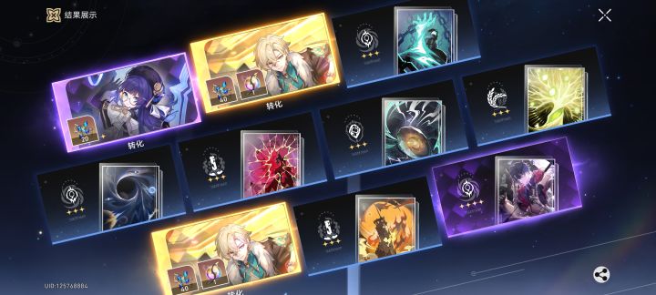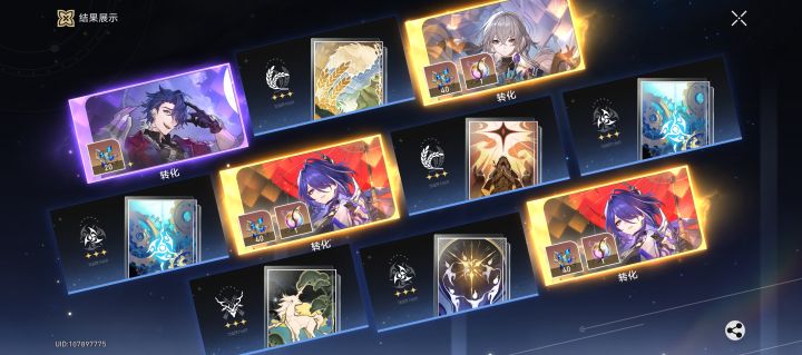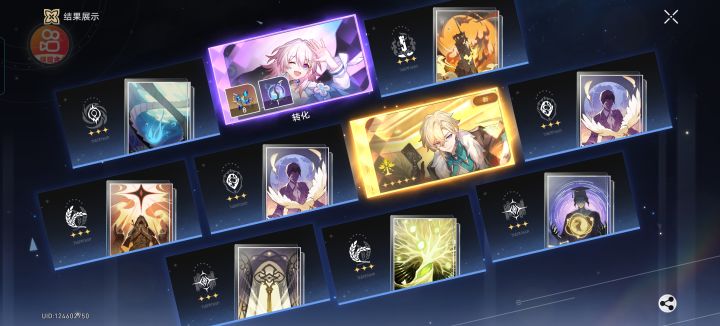 本来想给本来想给飞霄出个一命知更鸟的,可是手快点错成专武池了,结果就出了双金,而且距离上个金才五抽#崩坏星穹铁道礼包 #欧皇附体 #游戏杂谈 #