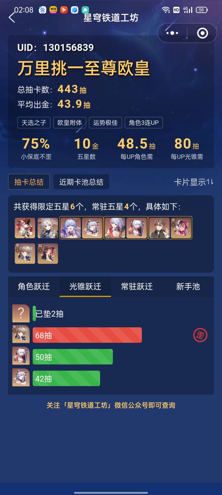 我喝酒多了,抽普票抽错池子,抽了专武一看小号没人能用,想着直接抽饮饮月算了,结果连金,人已经懵逼了