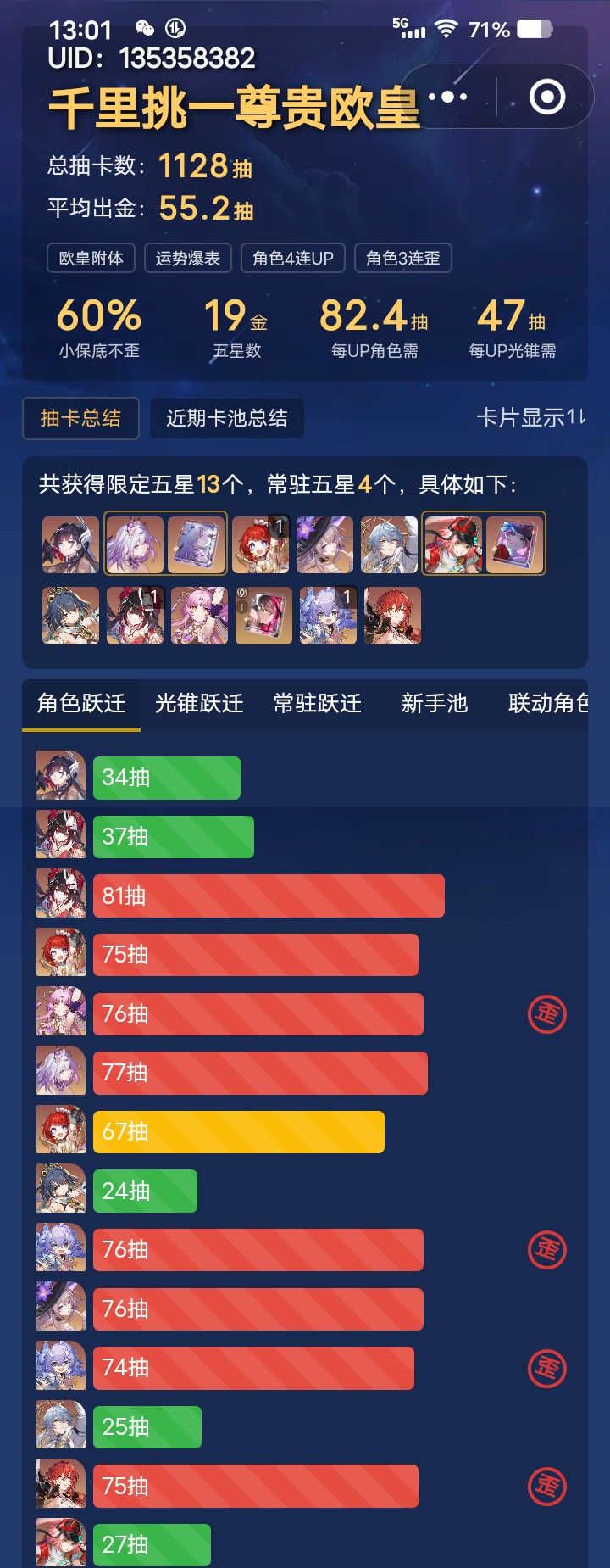今天刚出新版本,就抽到了我事先垫了五抽,然后后面是两个十连出的,当时出金那一刻,给我激动死了#崩坏星穹铁道#欧皇附体#海瑟音