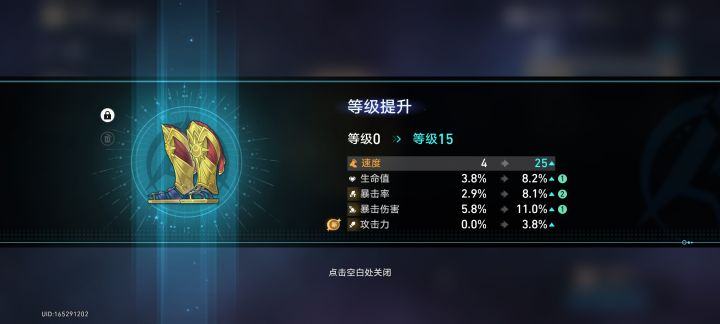 定向合成的速度+暴击率+爆伤的鞋子,没想到三词条拉了后,作为第4词条的攻击力百分比去到了第2位。 当我注意到这鞋子怎么只显示中了4次词条后,我还纳闷怎么4词条的遗器就升级了4次。。。#崩坏星穹铁道