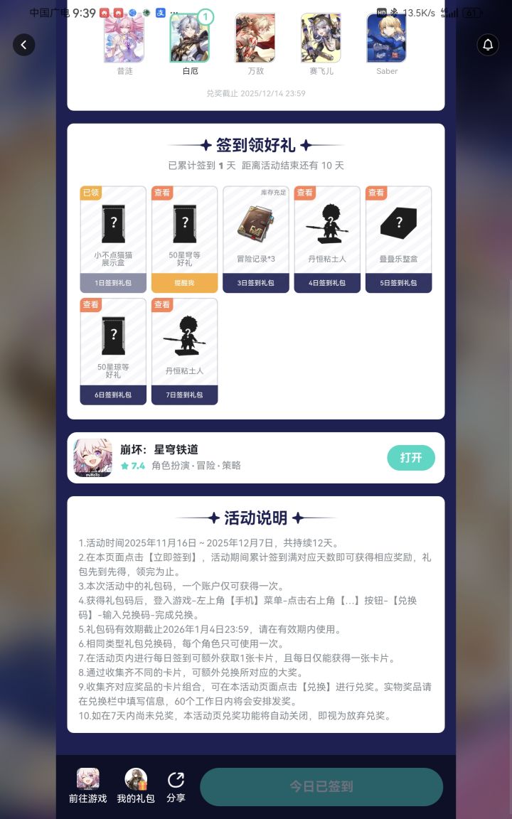 签到活动时间错了,你确定11月16日到12月7日是12天?😂