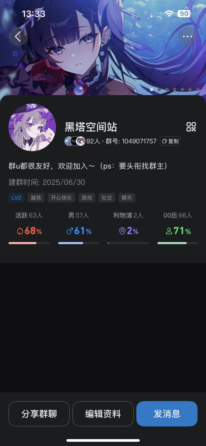 启程,二相乐园!!!无论你是大佬还是萌新,欢迎加入我们大家庭,本群环境以及氛围都很好,基本是上班族以及大学生居多,无论你是大佬崩铁的高玩还是不会玩,群里都会有问必答,异相仲裁,虚构叙事,模拟宇宙,混沌回忆,末日幻影想打满奖励,想打4000分,都可以进群讨论,非常欢迎热爱崩坏星穹铁道的玩家!群里有机器人,可查询角色练度,攻略等,日常较为活跃,也会提醒前瞻兑换码,各种平台兑换码福利 欢迎大家加入!#崩
