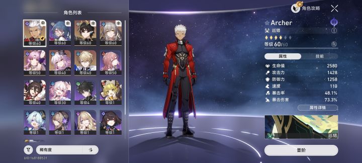 本人是回归玩家,看box应该可以知道玩的是1.6 2.0后面一点这几个赛季,因为当时前六个金没歪,所以说角色还是有一点的,直到抽第二个流萤%歪了开始,渐渐失去了玩这个游戏的动力(因为当时还是一个萌新,觉得抽了那么多的角色,还是不能把三个副本打满,和自己的期望比起来有太大落差了,心里有点不太能接受,再加上体力少,星穹也少,养成太慢,导致当时的我弃坑了)。但是现在我又重燃热情了,因为我是真的喜欢这种