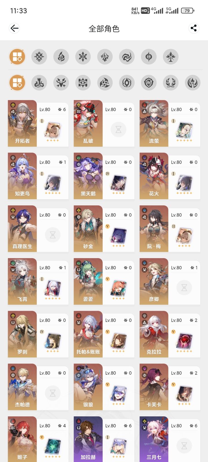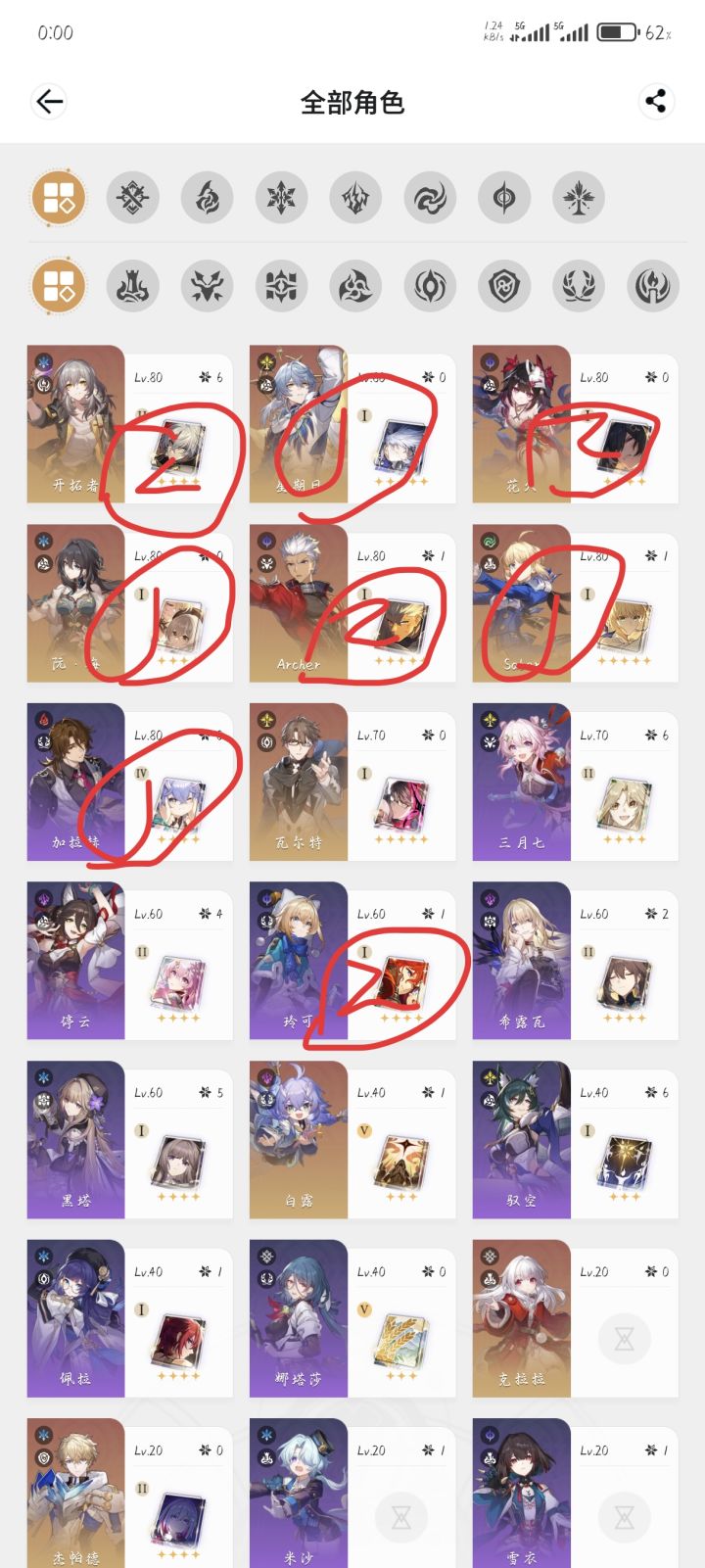 因为卡妈主养的dot队,除dot队和2+1克拉拉(不知道为什么一直歪她)外的都是只有本体,xp想抽大黑塔和砂金但不确定复刻时间,问问现在二队怎么配啊