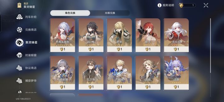 角色就如图所示的这些,感觉可能用得上的就花火一命?顺便再问问我手里就还有二百六十抽左右,那个爻光要不要抽一个,看着说主推是sp银狼也不知道能不能组队组一块啊