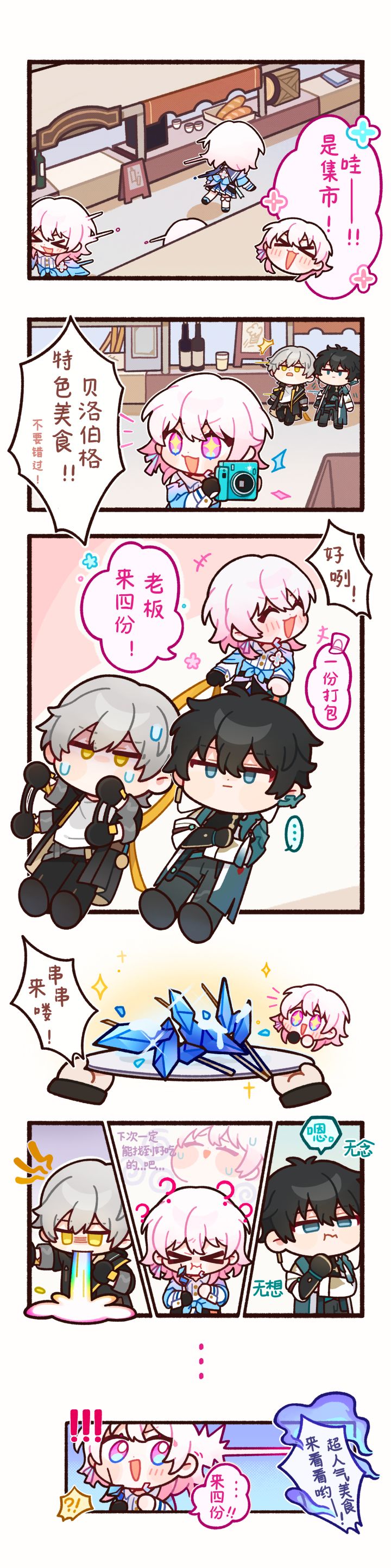 呜!欢迎光临帕姆展览馆,本展览馆将不定时展出各式Q版表情包、漫画等内容(o´ω`o)ノ“超超超——人气的贝洛伯格美食!走过路过不要错过哦~”