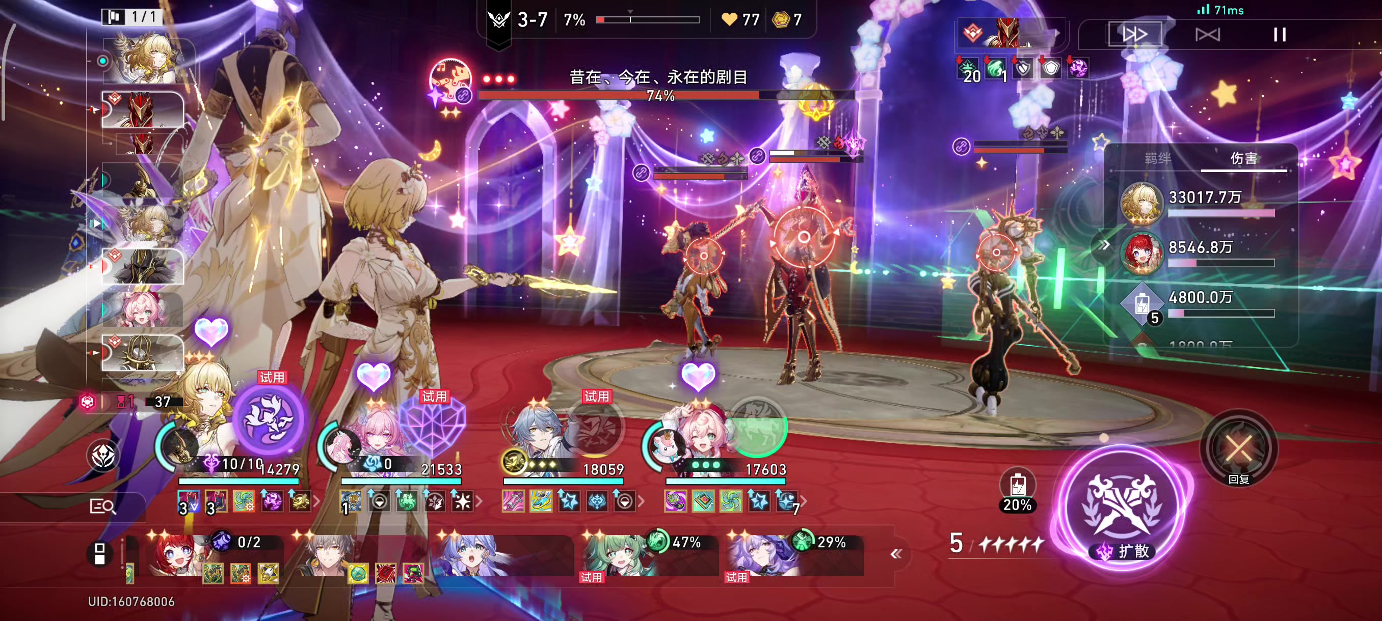 建议平民白厄玩家抽只昔涟,很不错,我这是全员0+0。
