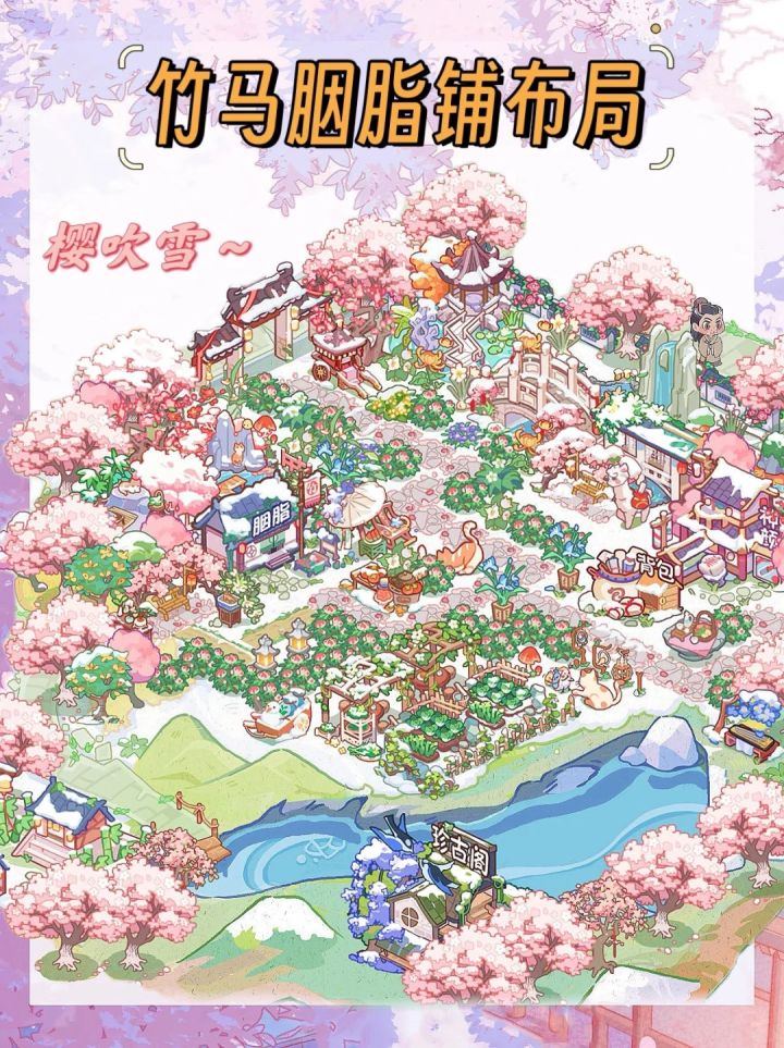 各位亲爱的掌柜,为了给大家持续带来新的装扮思路、分享给更多掌柜看到,我们向优秀的创作者申请了官方号搬运的授权~之后大家点击【装扮竹马】子版块,就能看到我们持续更新,分享给大家的优秀装扮分享啦~今天给大家带来来自小红书博主@花月沾衣 的装扮分享,以下是她分享内容的配文:买胭脂,里边请~春日花花地图布局🌸🌸粉色系樱花主题的胭脂铺布局左侧是莫奈花园里的胭脂铺与小田园右侧是山水园林中的神颜阁与