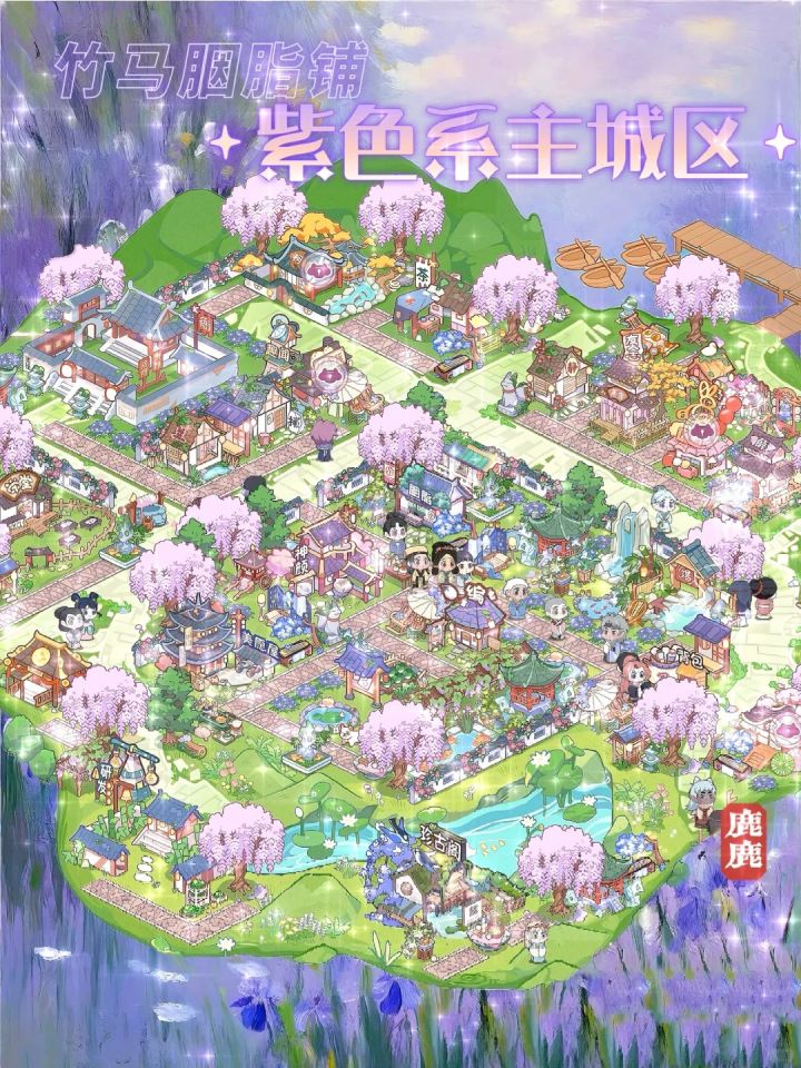 各位亲爱的掌柜,为了给大家持续带来新的装扮思路、分享给更多掌柜看到,我们向优秀的创作者申请了官方号搬运的授权~之后大家点击【装扮竹马】子版块,就能看到我们持续更新,分享给大家的优秀装扮分享啦~今天给大家带来来自小红书博主@鹿鹿jocelyn 的装扮分享,以下是她分享内容的配文:竹马胭脂铺|紫色系主城区这两天一直沉迷于这个游戏!最喜欢的树就是千年紫藤啦💜搭配了紫色的花一起主城区的中心放了主
