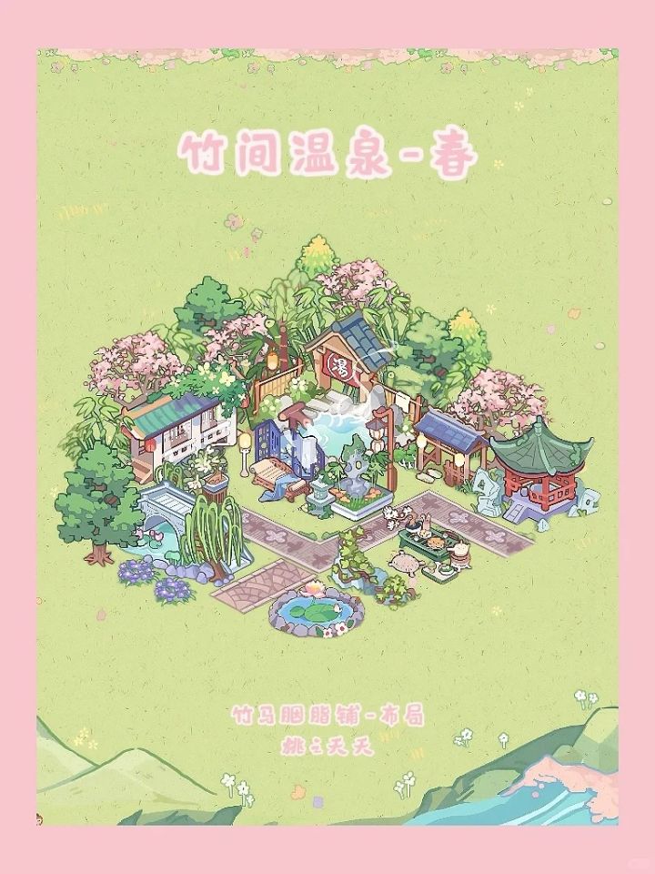 各位亲爱的掌柜,为了给大家持续带来新的装扮思路、分享给更多掌柜看到,我们向优秀的创作者申请了官方号搬运的授权~之后大家点击【装扮竹马】子版块,就能看到我们持续更新,分享给大家的优秀装扮分享啦~今天给大家带来来自小红书博主@桃之夭夭爱桃汁 的装扮分享,以下是她分享内容的配文:♨️来《竹马胭脂铺》里泡温泉吧~‼我又来啦~还是《竹马胭脂铺》!🏡这次看上了其中的温泉小屋,摆了一个竹间温泉,这样悠