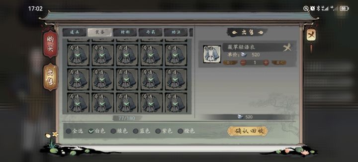 全选白色普通装备,相同的普通选中最后售卖的还是右边选中的一个,而且也添加不了数量,