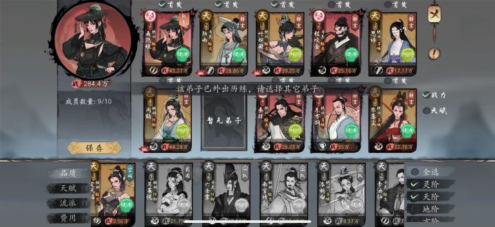 招募后自带也就自带了,还不把所有招式都学会,只能扔功法阁推演,还没得卖的地方不能靠读书堆熟练度把招式全学会,哪怕人阶功法,都能靠买很多本靠读书学会所有招式不用花时间推演,基础功法还不让删掉,也不能撰写,非要占一个格子,背景设定里各个牛逼的不行的弟子,甚至还有十大门派掌门,我不求你自带什么牛逼的功法,你带艺投师好歹把自带的基础功法融会贯通吧?