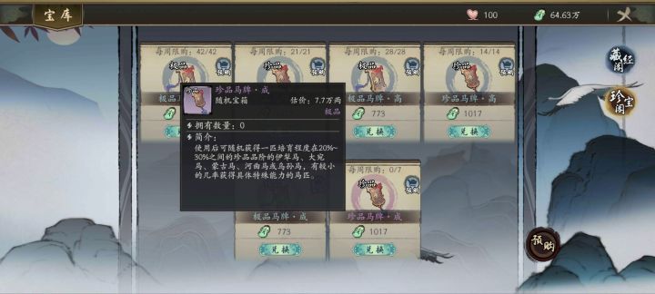 反馈个问题,像这种优品马一百培育度两个一组养了估计五六十次了,就一组突破到极品的,这概率是不是有问题,没其他限制吧