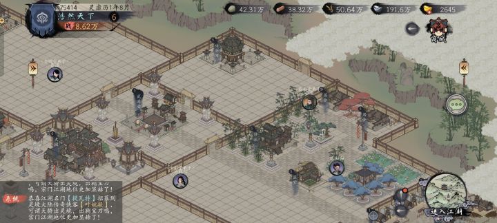 有两种思路,一种是用墙当围栏,一种是用树木当围墙,看大家爱好。一开始是最头疼的,把大殿位置确定后就慢慢装修,确定各自的区域就好啦~